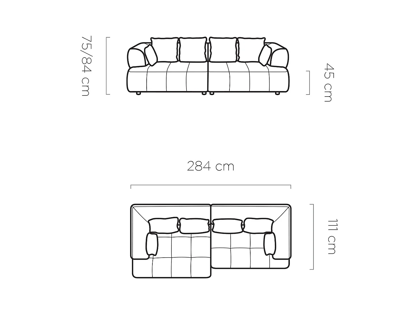 AULA BigSofa met verstelbare zitdiepte, zonder slaapfunctie, verstelbare rugleuning, modern design, lichtgrijs, 284x111x84/75 cm