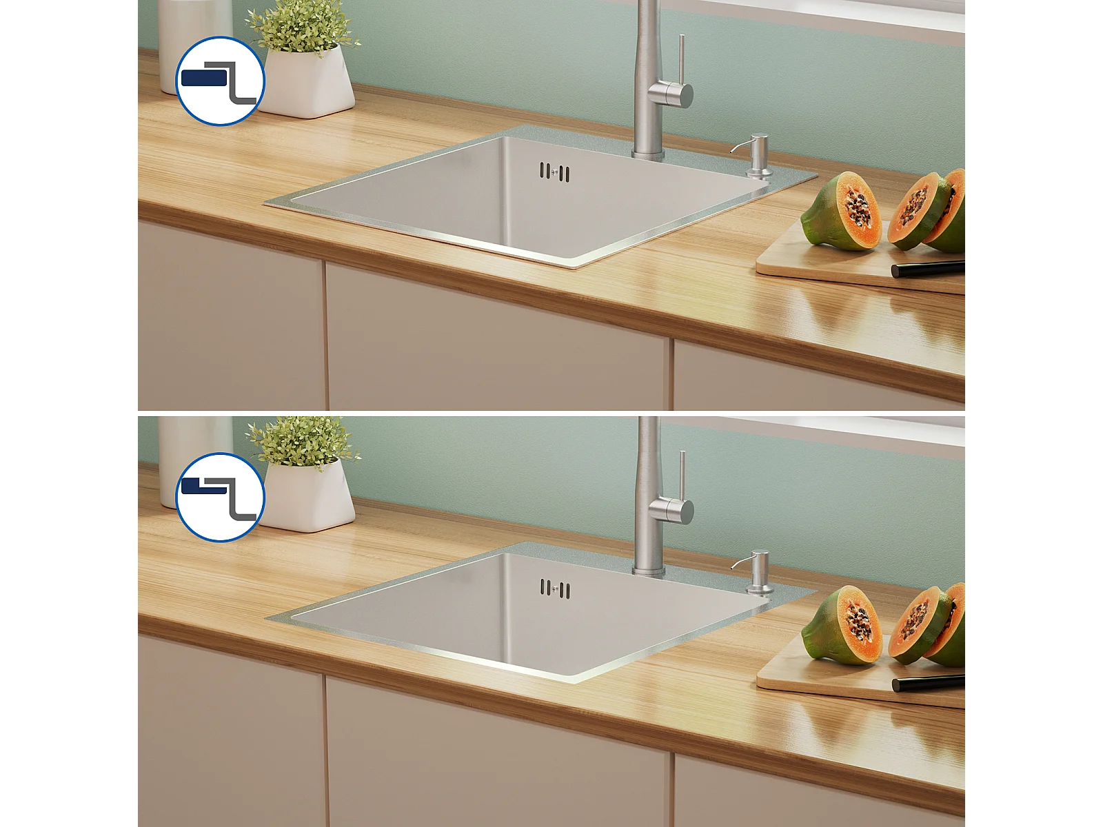 AuraLum Max Inbouwspoelbak 44x44x20CM cm - 304 roestvrijstalen spoelbak 1 bak - Zilver keuken spoelbak met afvoer, EU Model