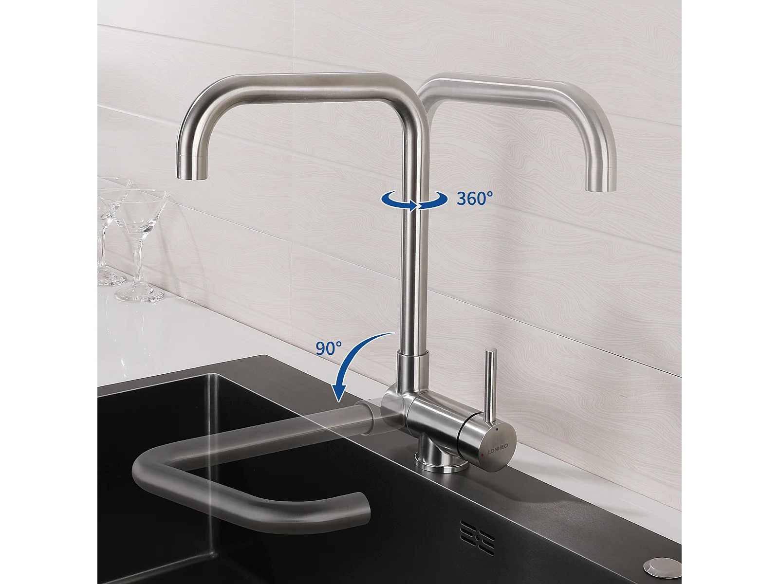 AuraLum Max Aanrecht 1Bak Zilver,44*49*20 CM,met Zeepdispenser,Rovs+Mengkraan Keuken Opklapbaar 360° Draaibaar Koud Water Warm,EU Model