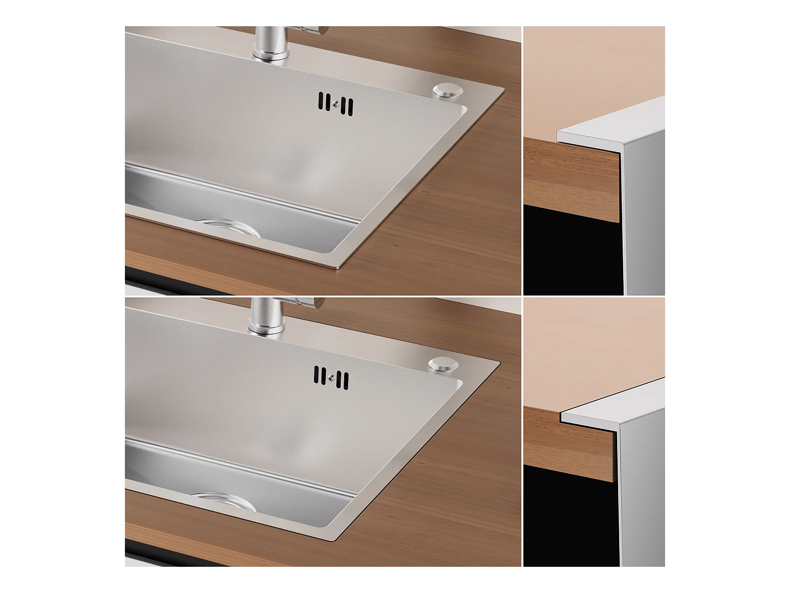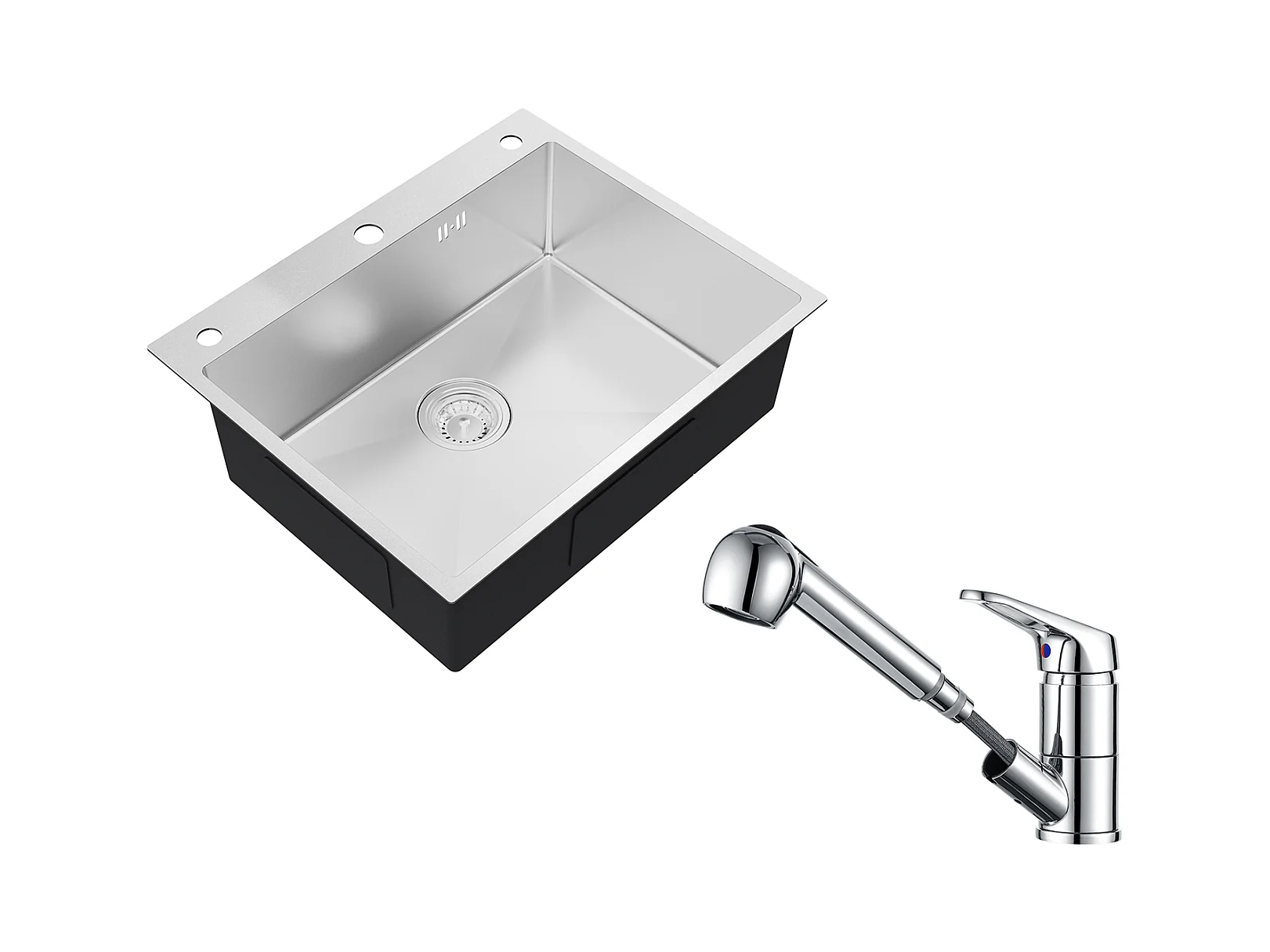 AuraLum max Inbouw Aanrecht,1 Bak,60*49*20CM,304 RVS Gootsteen,Zilver+trekbare keukenkraan met twee functies, chroom