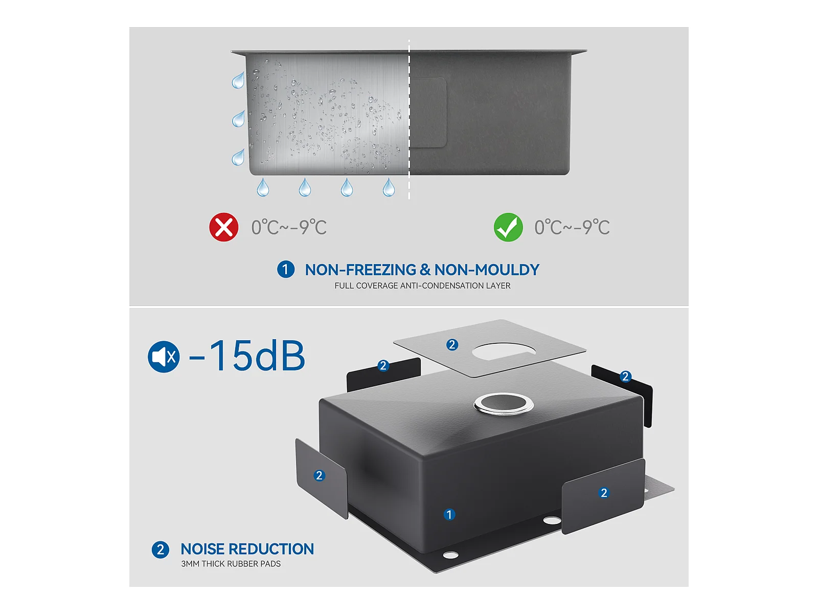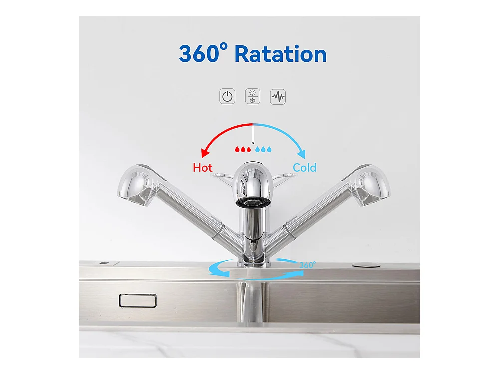 Auralum max Inbouw Keukenspoelbak,1 Bak,60*49*20CM,304 RVS Spoelbak,Zilver+Keukenkraan, 360° Richtbaar,Warm/Koud Water,In Messing,Chroom