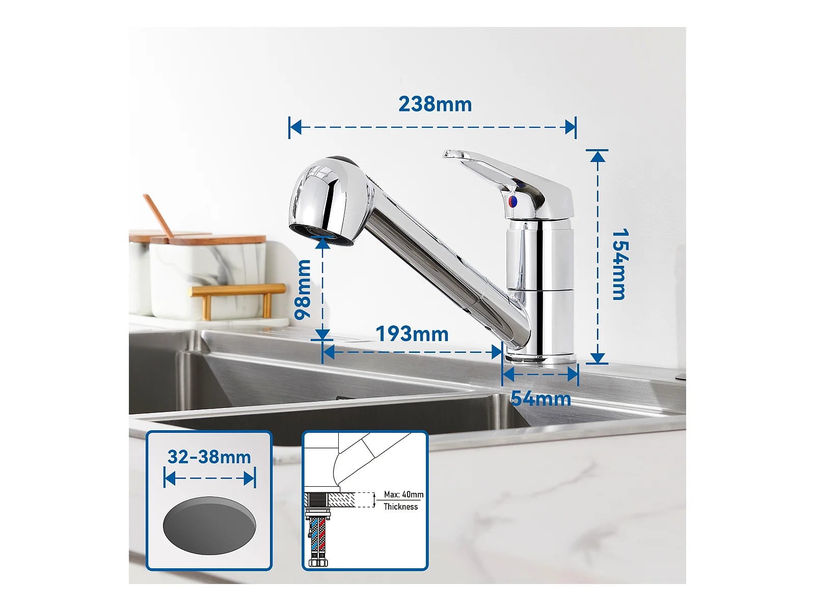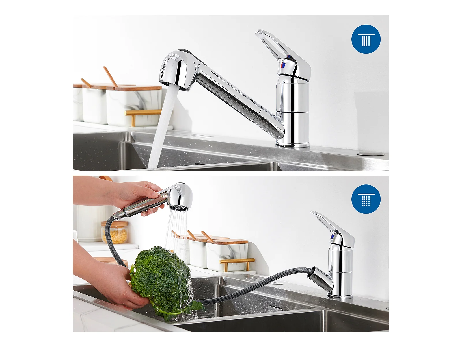 Auralum max Inbouw Aanrecht,1 Bak,60*49*20CM,304 RVS,Zilver+Keukenkraan met Uittrekbare Handdouche 360 °2 Functies,Verchroomd