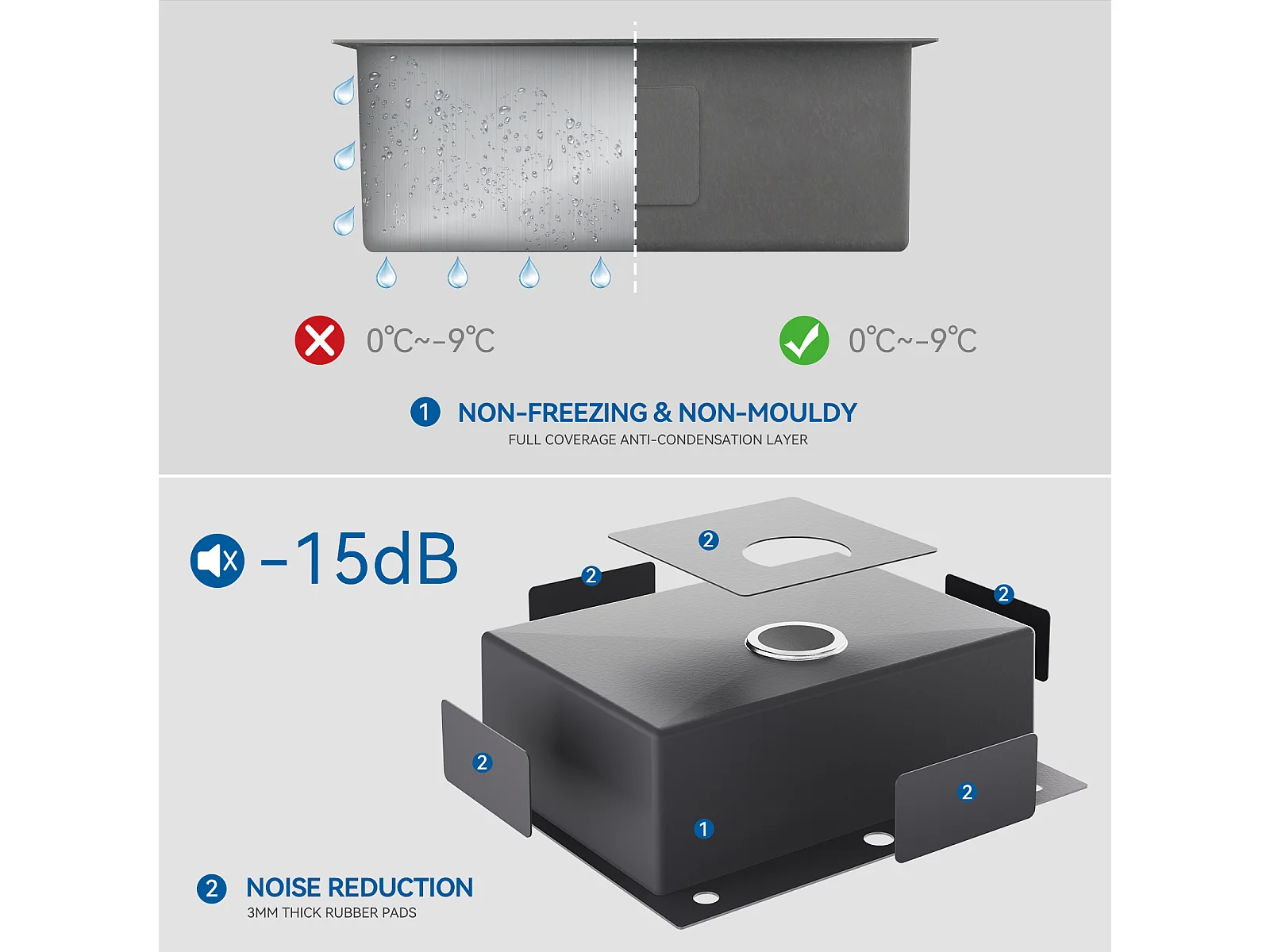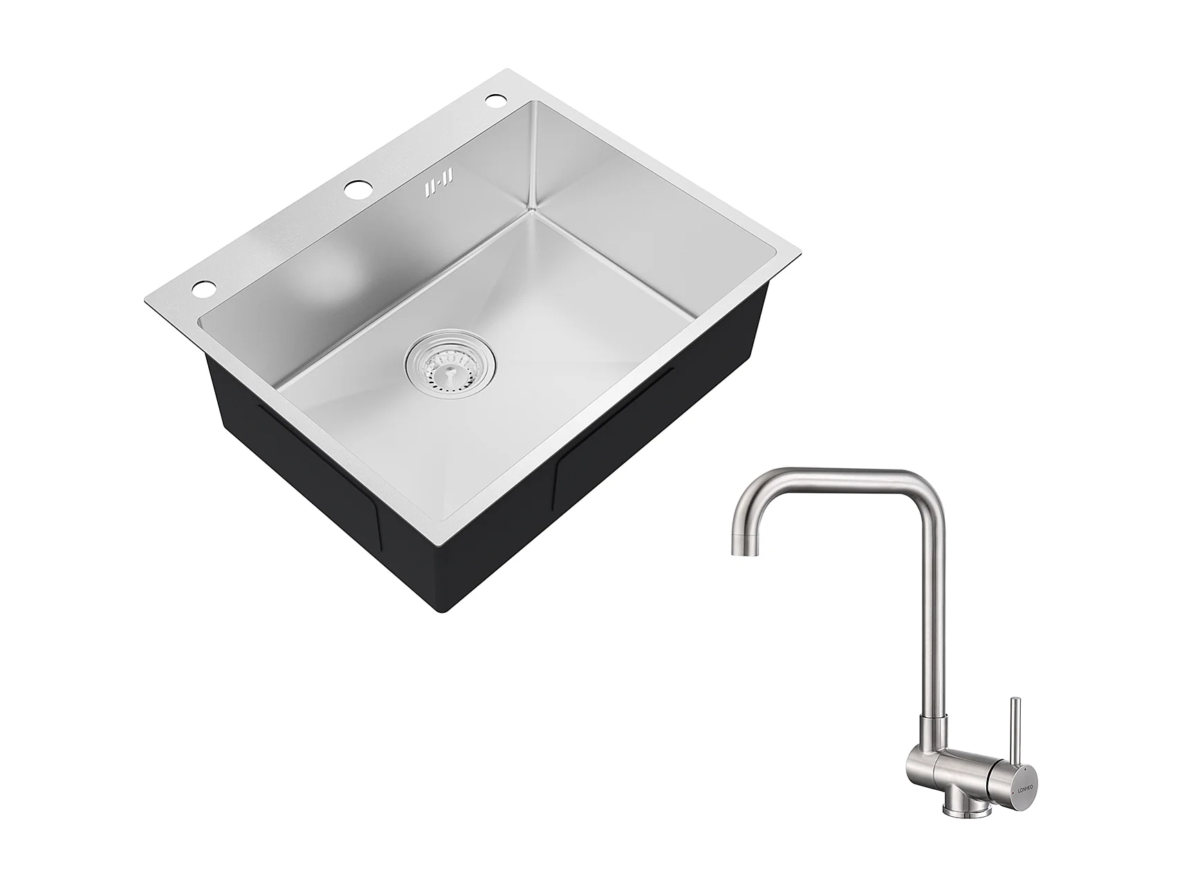 Auralum max Inbouw Keukenspoelbak,1 Bak,60*49*20CM,304 RVS Spoelbak,Zilver+Keukenkraan, 360° Richtbaar,Warm/Koud Water,In Messing,Chroom