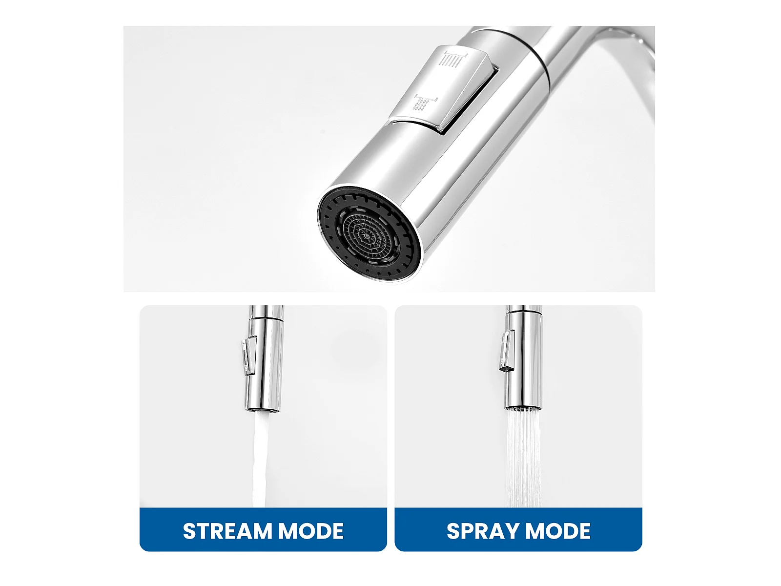 Keukenmengkraan met 2 waterafvoermodi, keukengootsteenkraan voor uitschuifbare douche, 360° rotatie, 7 vormen, roestvrij staal