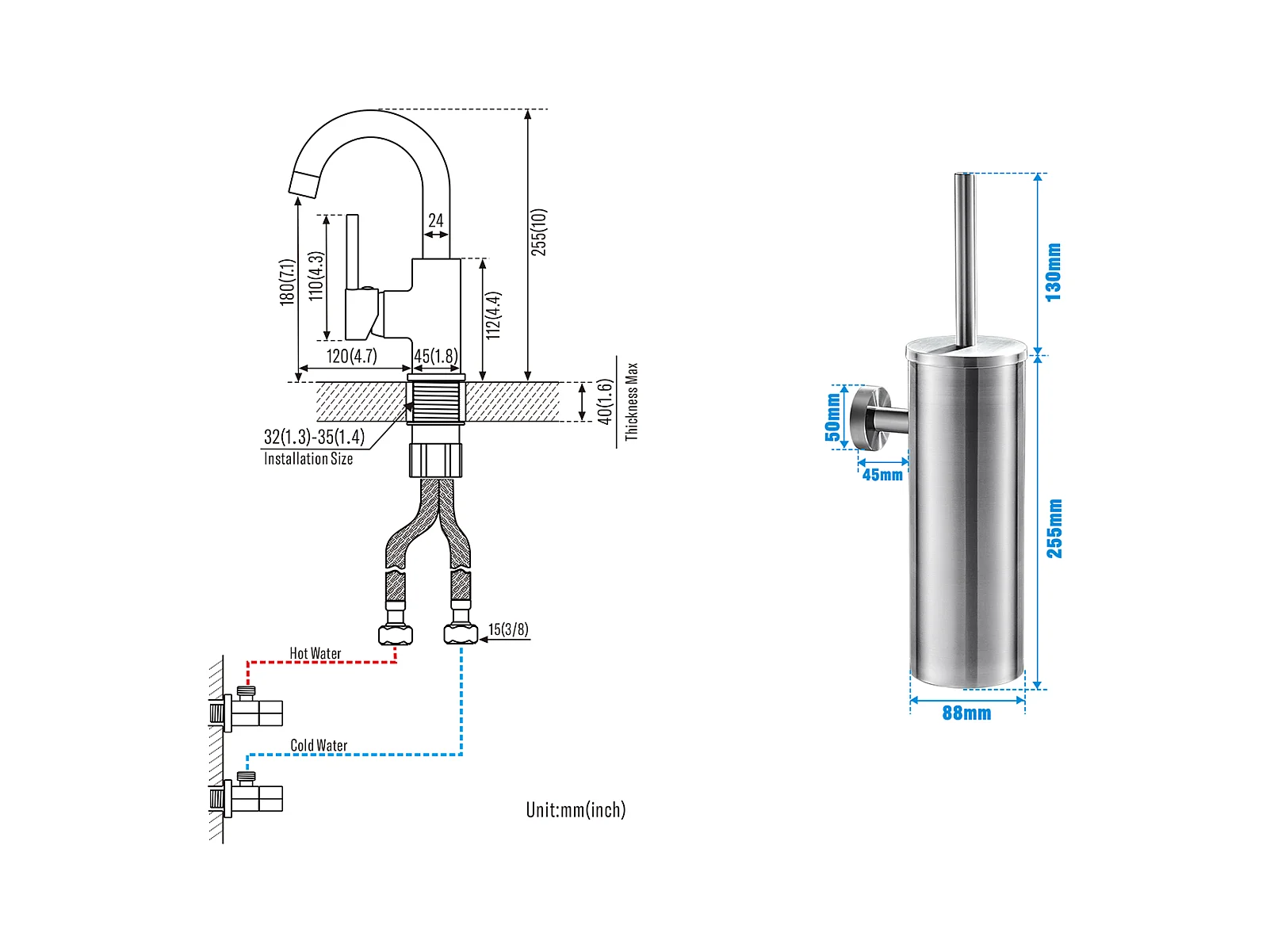 AURALUM MAX Wastafelkraan Badkamer Hoge Uitloop Chroom BrillaNt 360° Draaibare + Toiletborstelhouder Roestvrij Staal Toiletborstel Wandmontage
