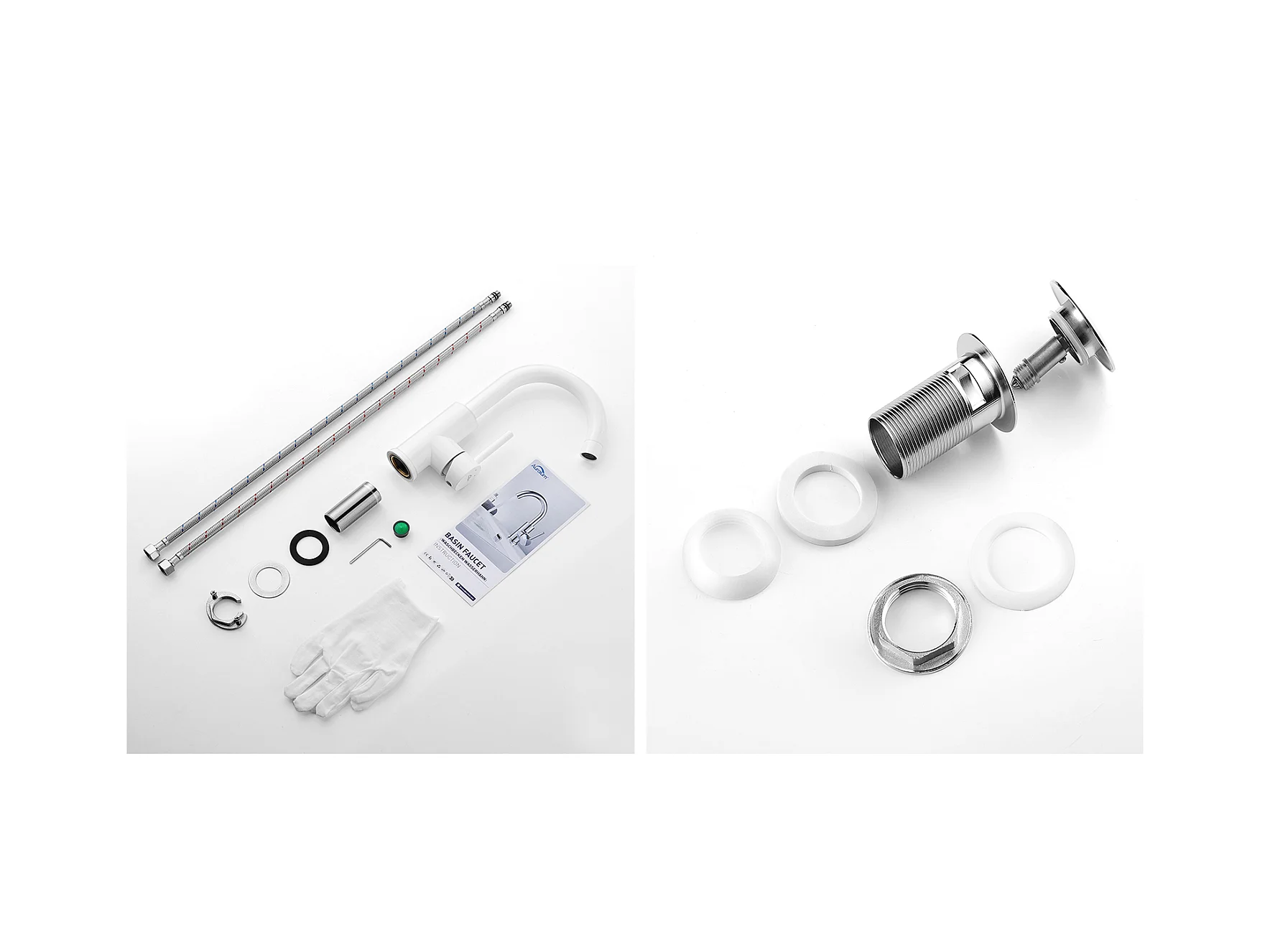 Wastafelkraan Wit 360° Draaibaar, Afneembaar Romper, Koud/warm Water+ Wastafel Sifon U-vorm Anti-geur Sifon Buis, Ø32 mm, Chrome