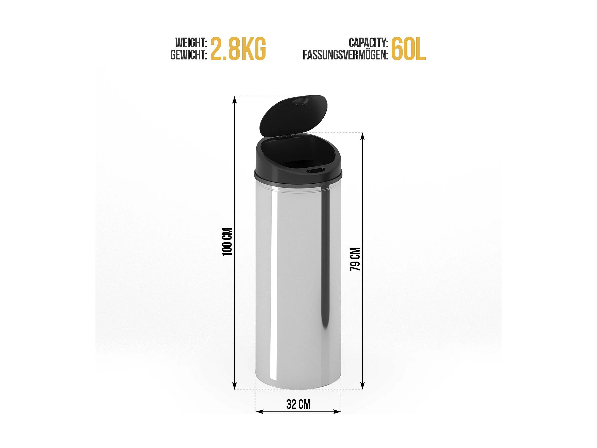Automatische afvalbak - 60L - met sensor - Chroom