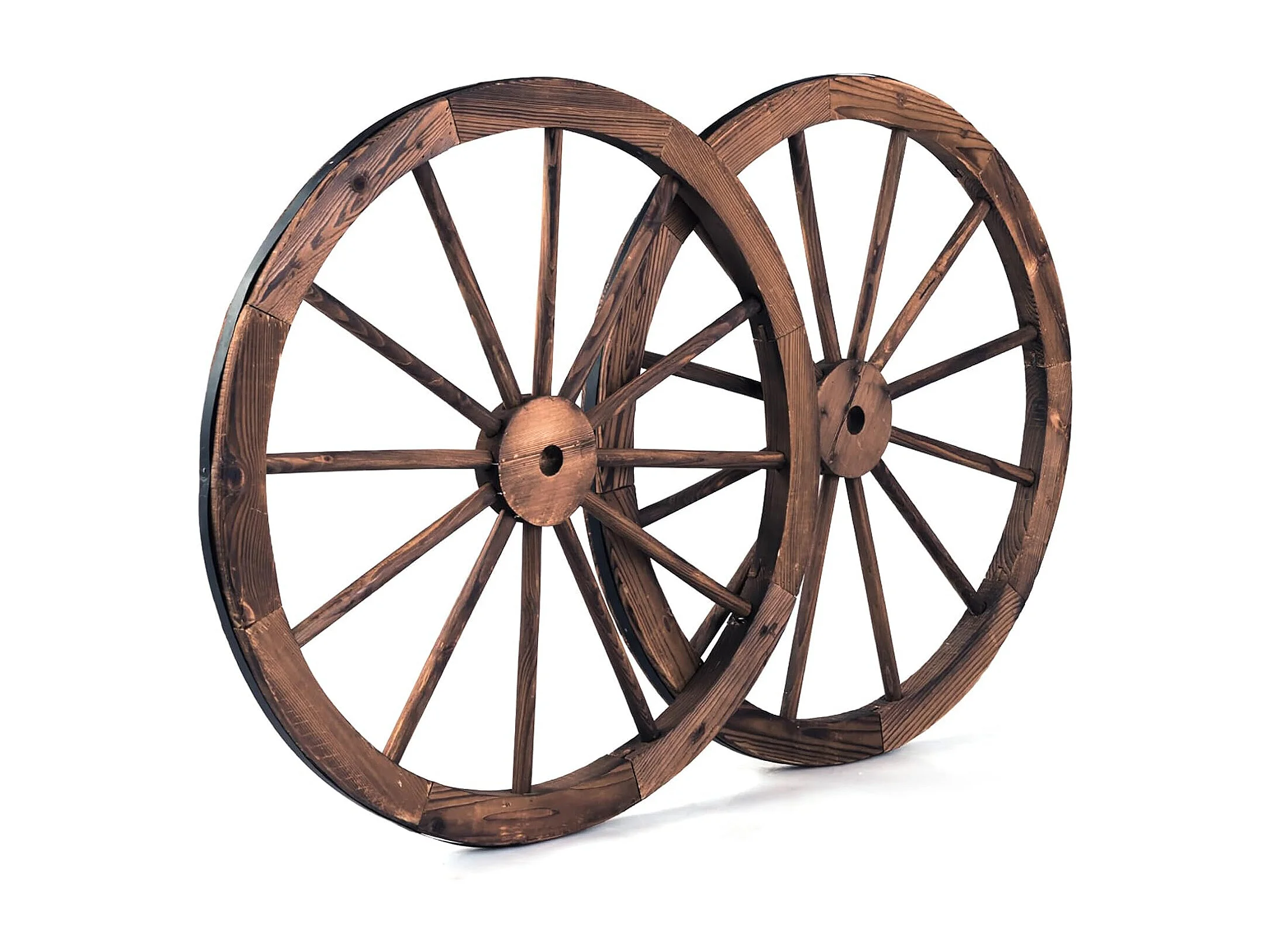 Autowiel, 2-delige set, bruin, houten wiel met plaatstaal, houten wagen, decoratief Wagon wiel, 76x76x3,5 cm
