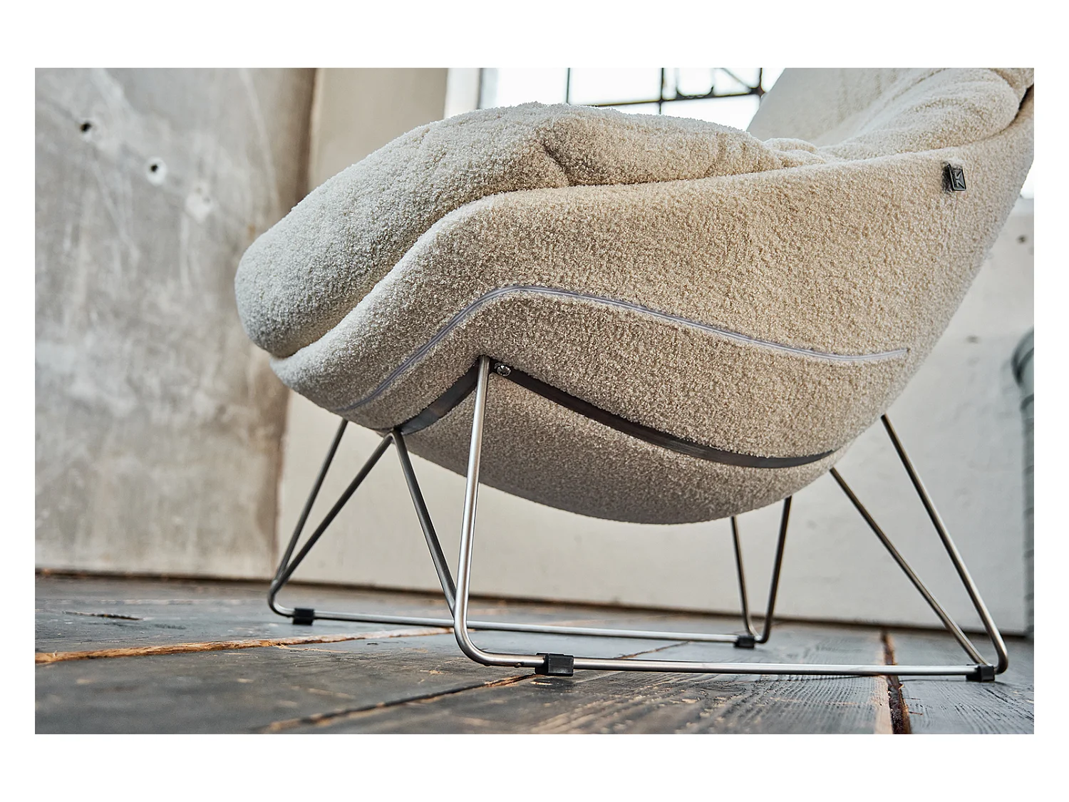 Ivoor stoffen fauteuil met bouclé-effect en zwarte stalen poten - EMERSON