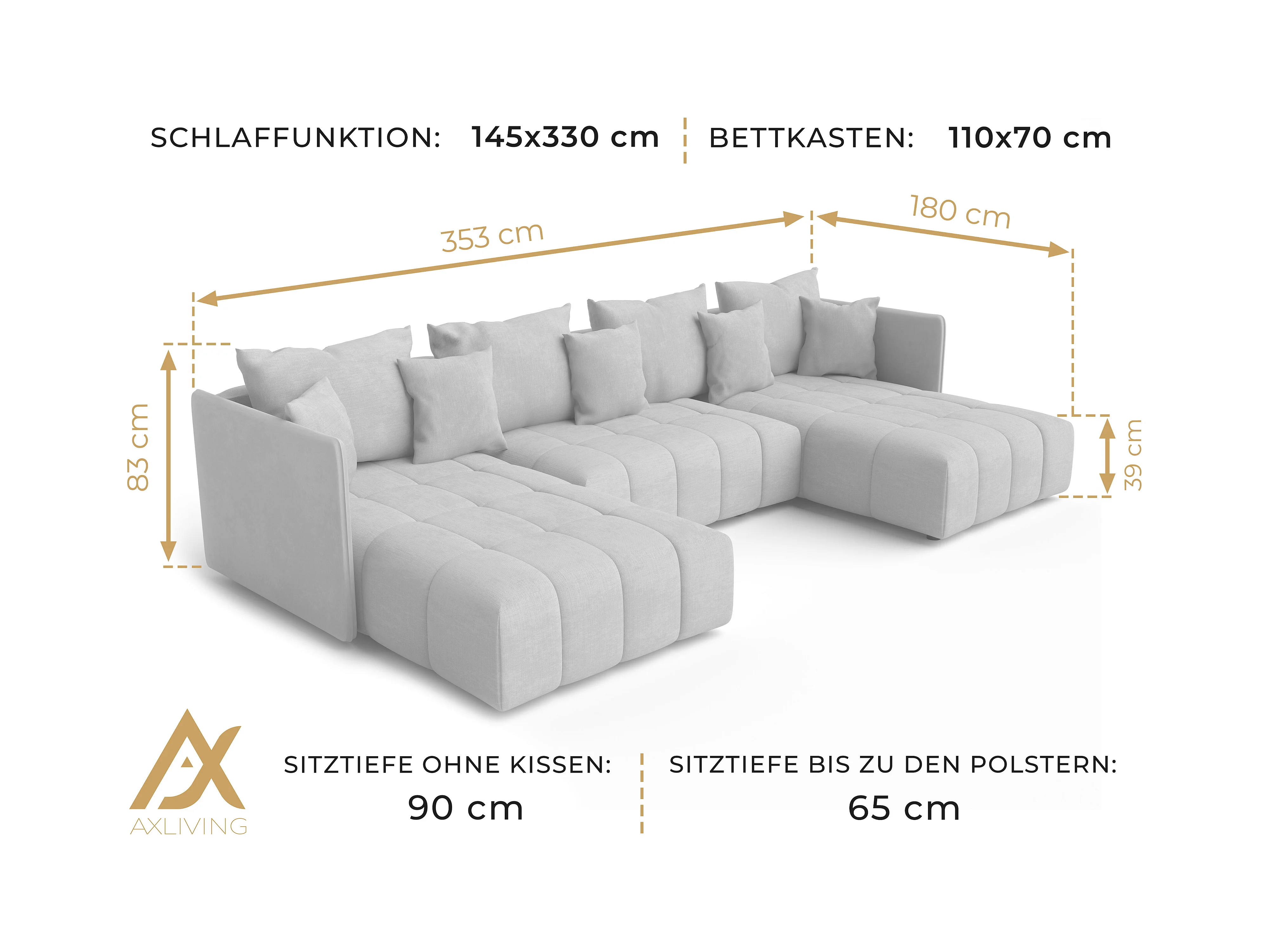 AX LIVING Catea beige hoekbank slaapbank in U-vorm – 364 cm breed