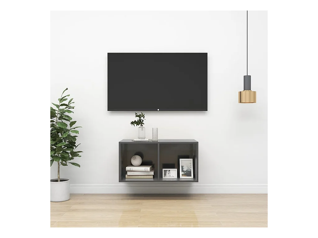 Ashinor Tv-wandmeubelen 2 st bewerkt hout hoogglans grijs