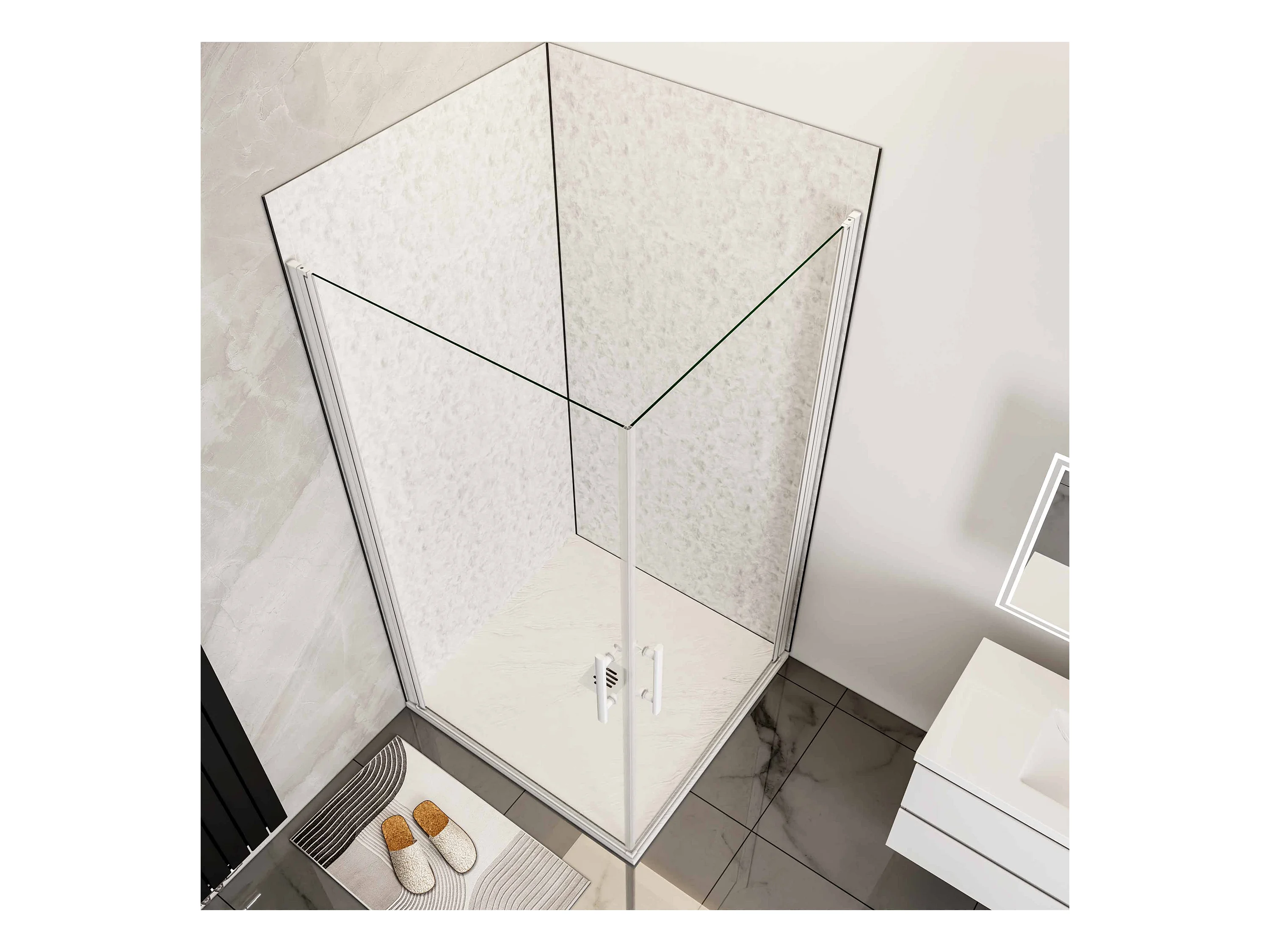 B:100xD:100xH:185cm douchecabine,5mm EasyClean veiligheidsglas,matte wit elektroforetische aluminium frame