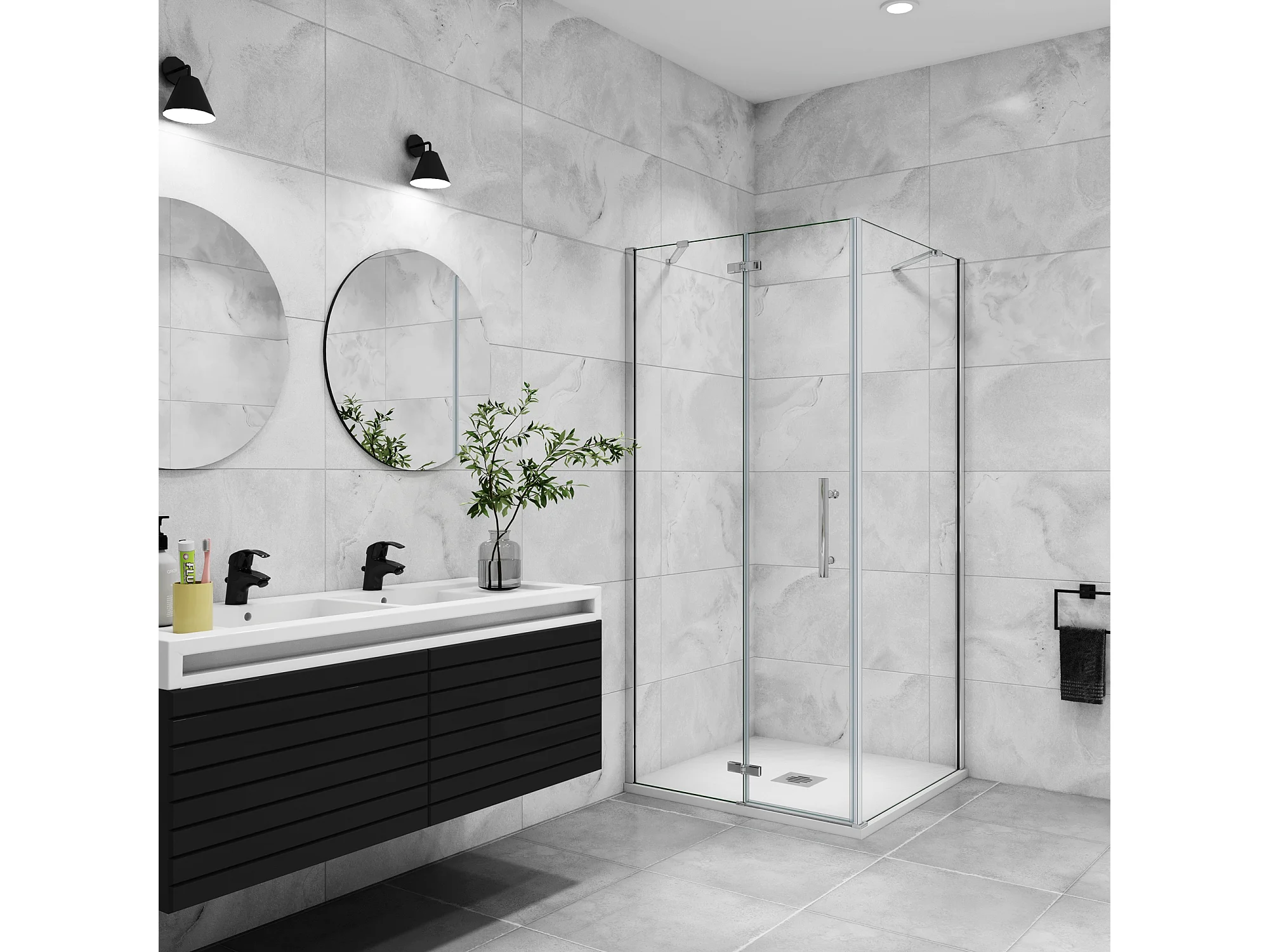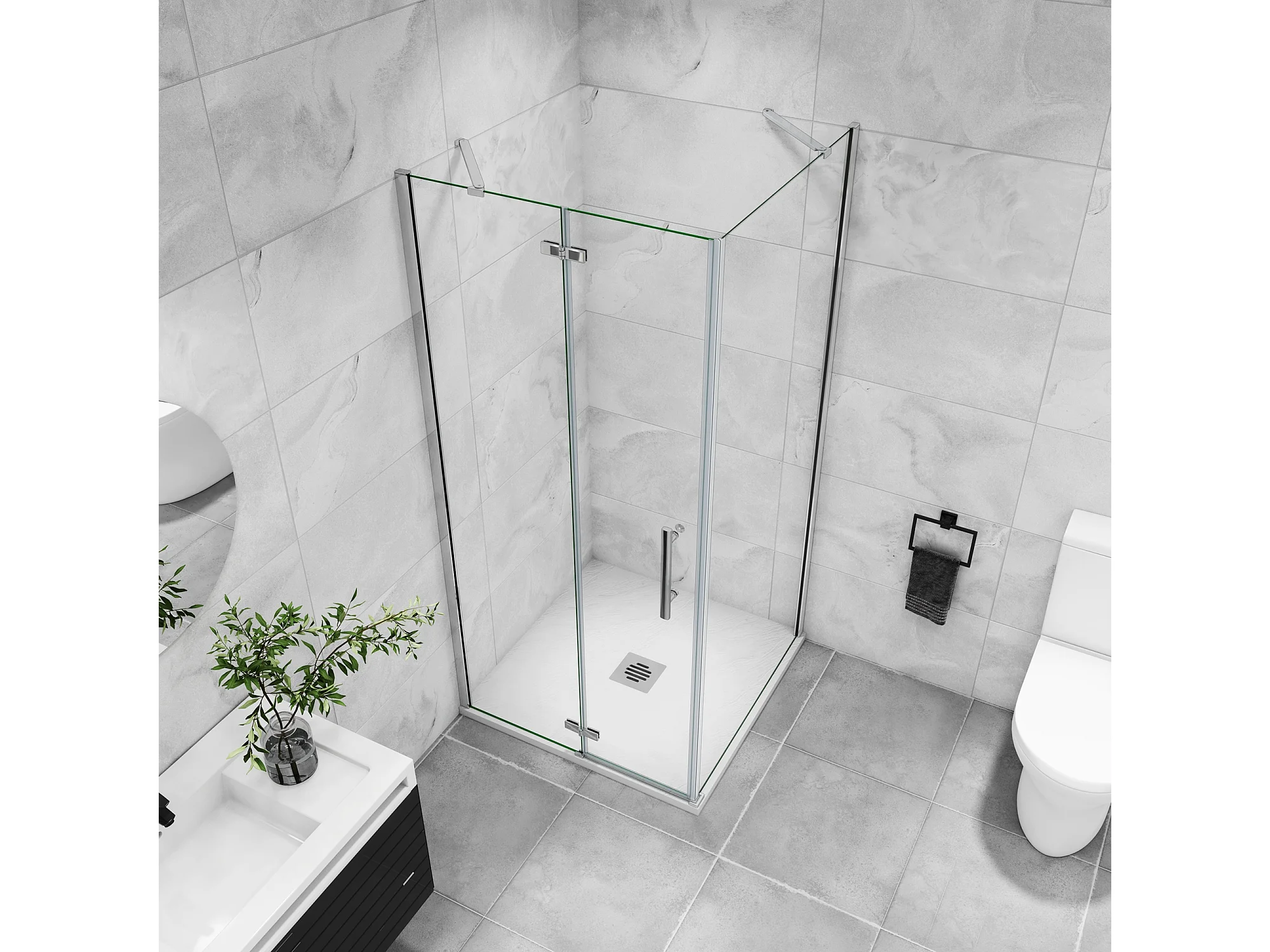 B:100xD:76xH:195 cm Douchecabine,draaideur + zijpanelen,6mm helder EasyClean veiligheidsglas,50cm Stabilisatorstang,glanzend chroom profiel.