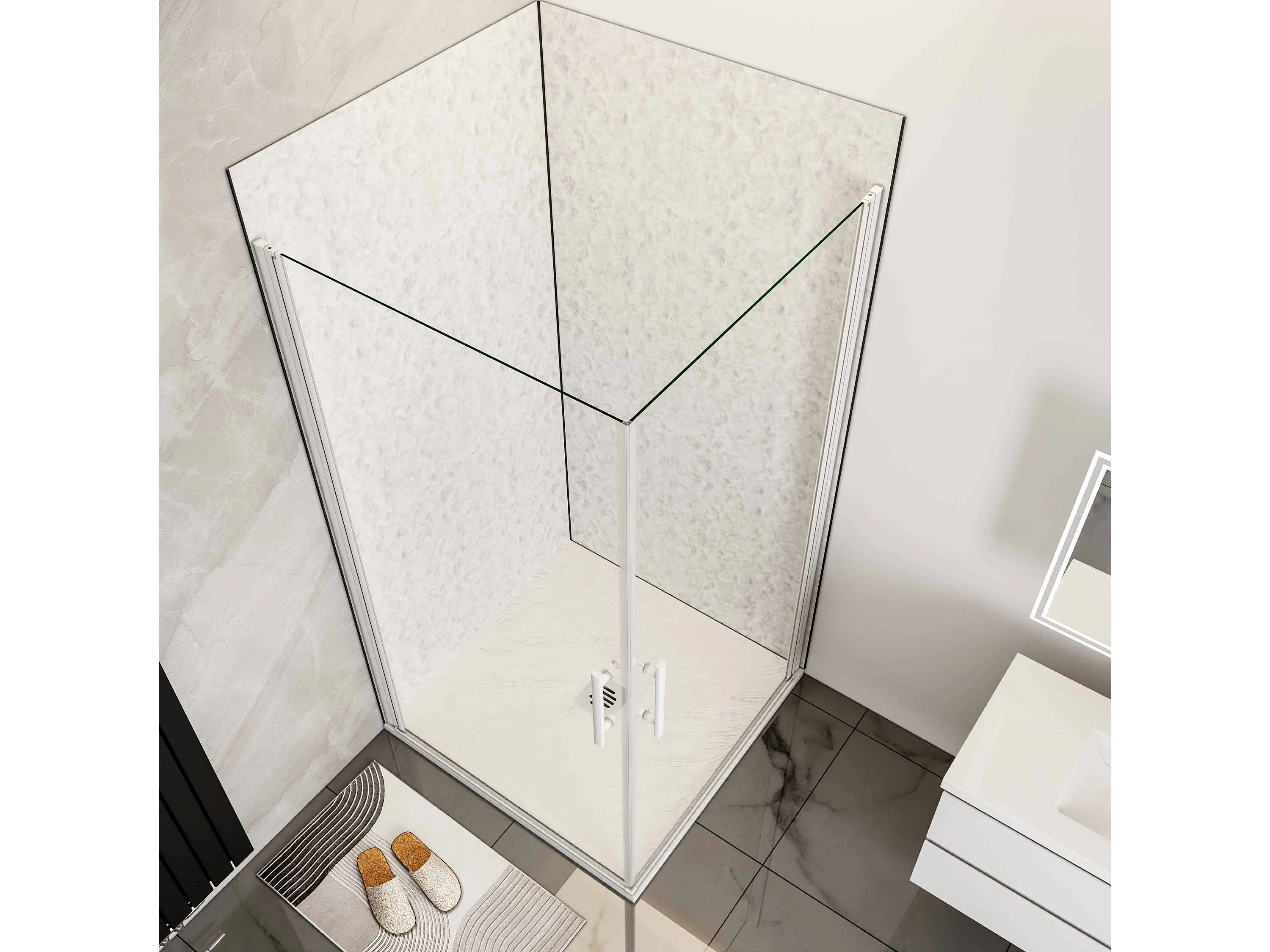 B:70xD:90xH:185cm douchecabine,5mm EasyClean veiligheidsglas,matte wit elektroforetische aluminium frame