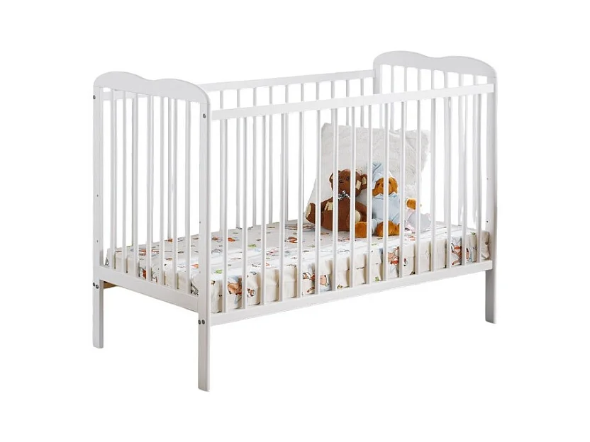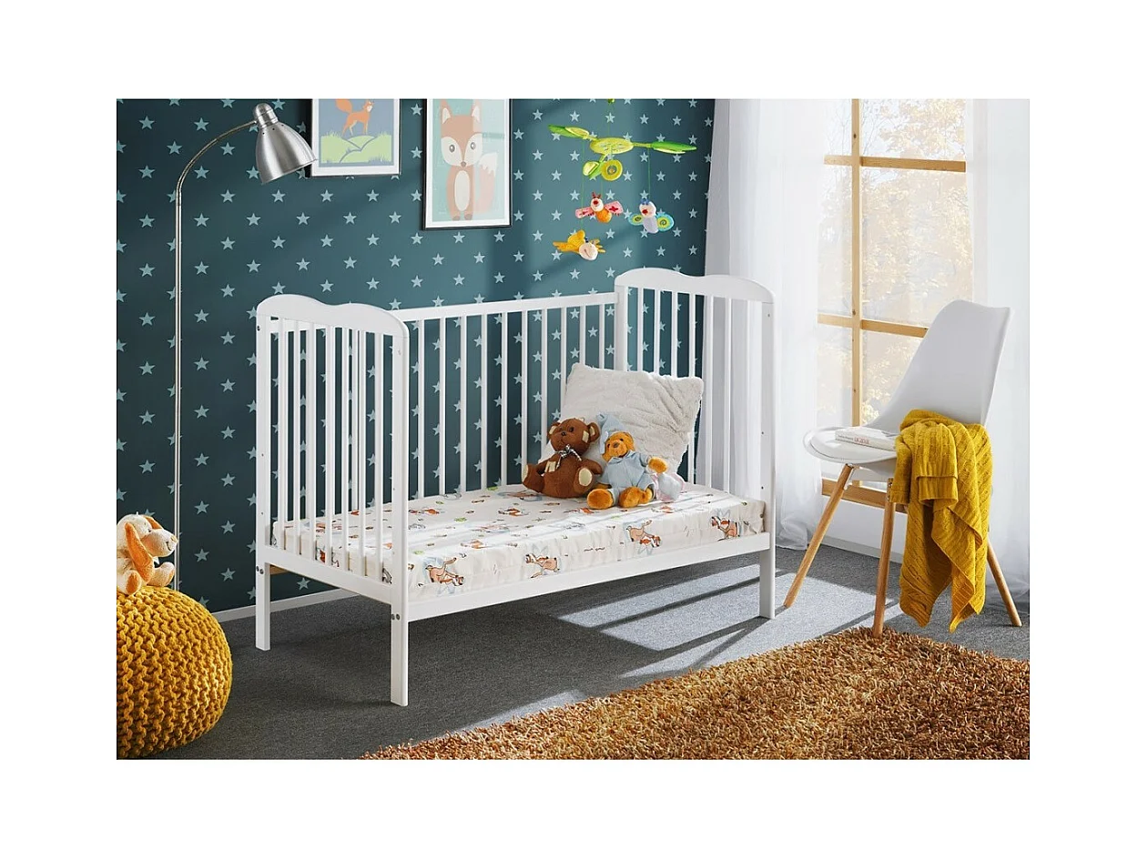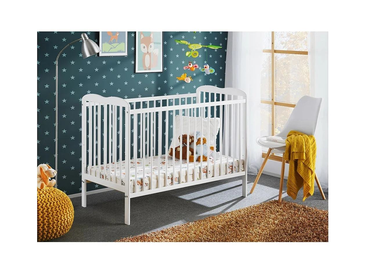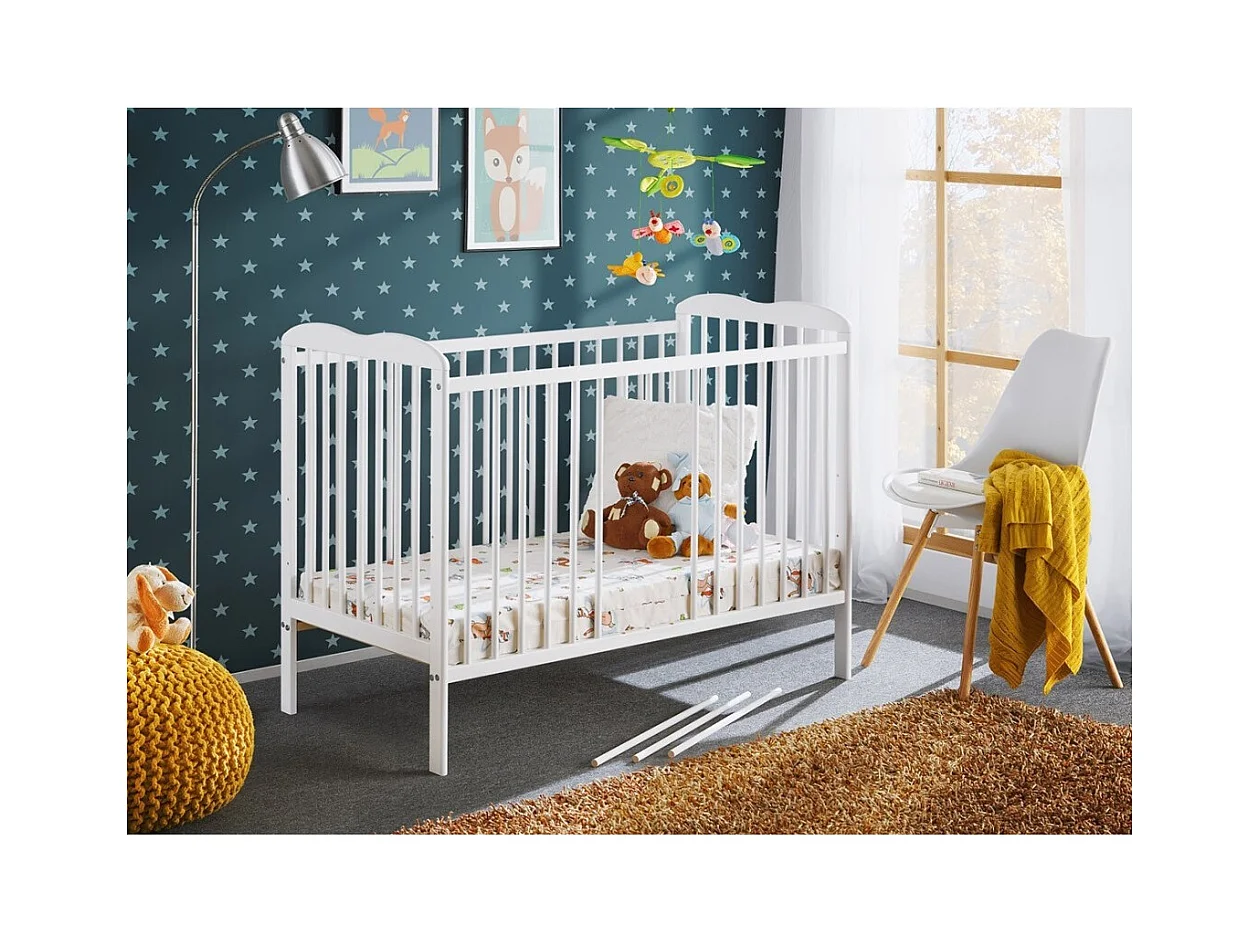 Babybed en matras uit de collectie GUIZMO, in hoogte verstelbaar. Matte witte kleur.