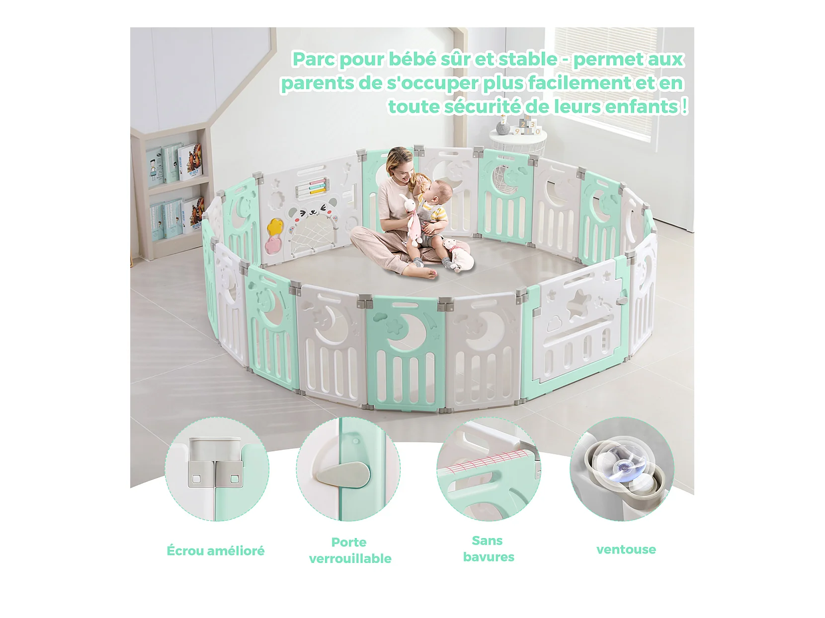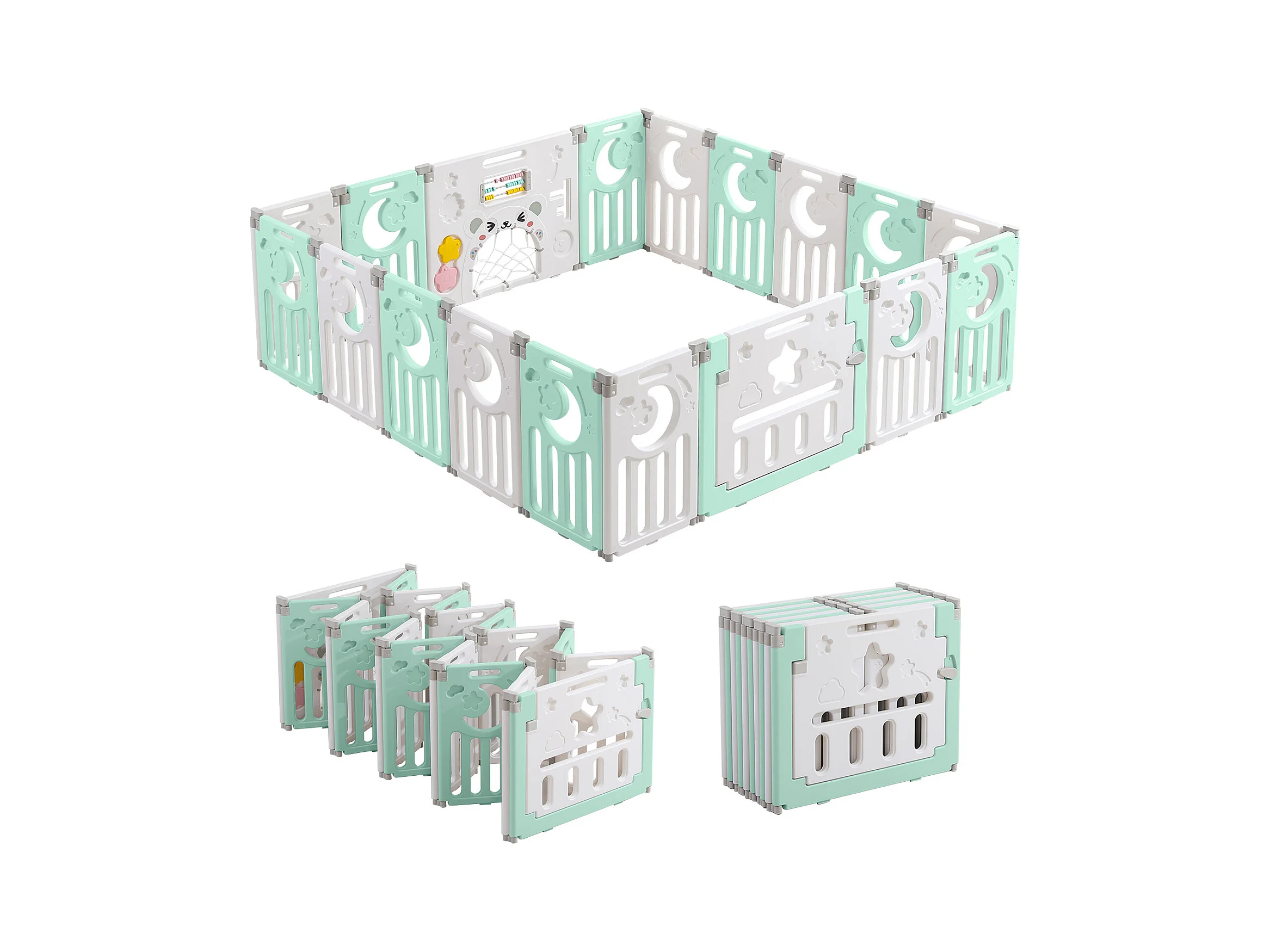 Babybox 16+2 panelen, XXL boxhekveiligheidshek, ecologisch kunststof beschermingsrooster met deur, 190x190cm-groen