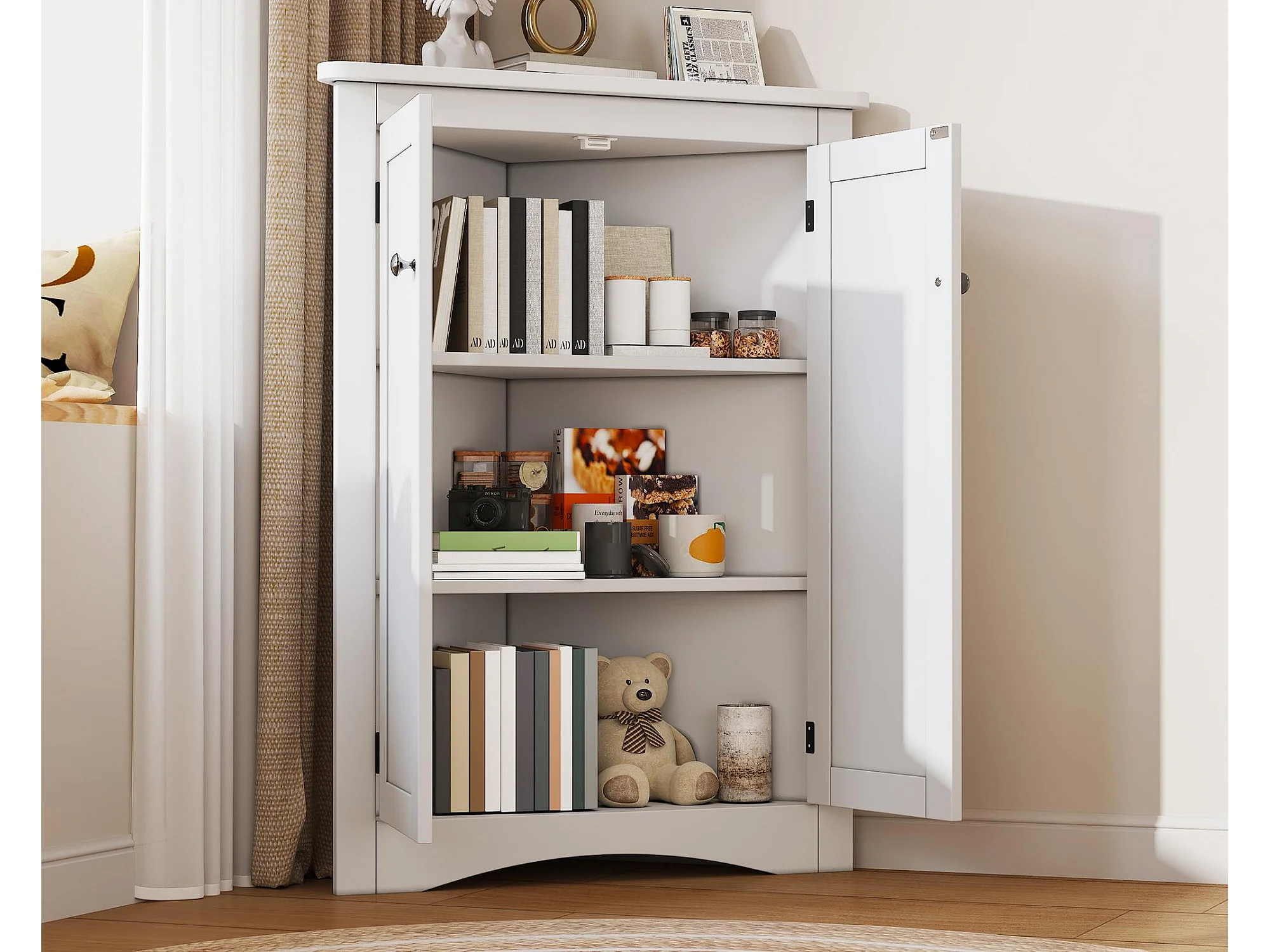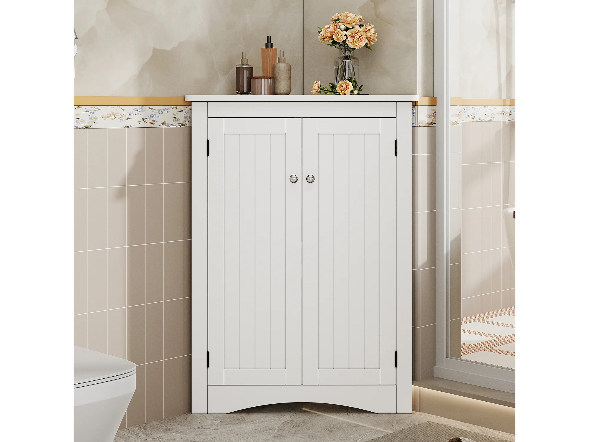 Badkamer hoekkolom - met 2 deuren - met 3 planken - verstelbare planken - Wit