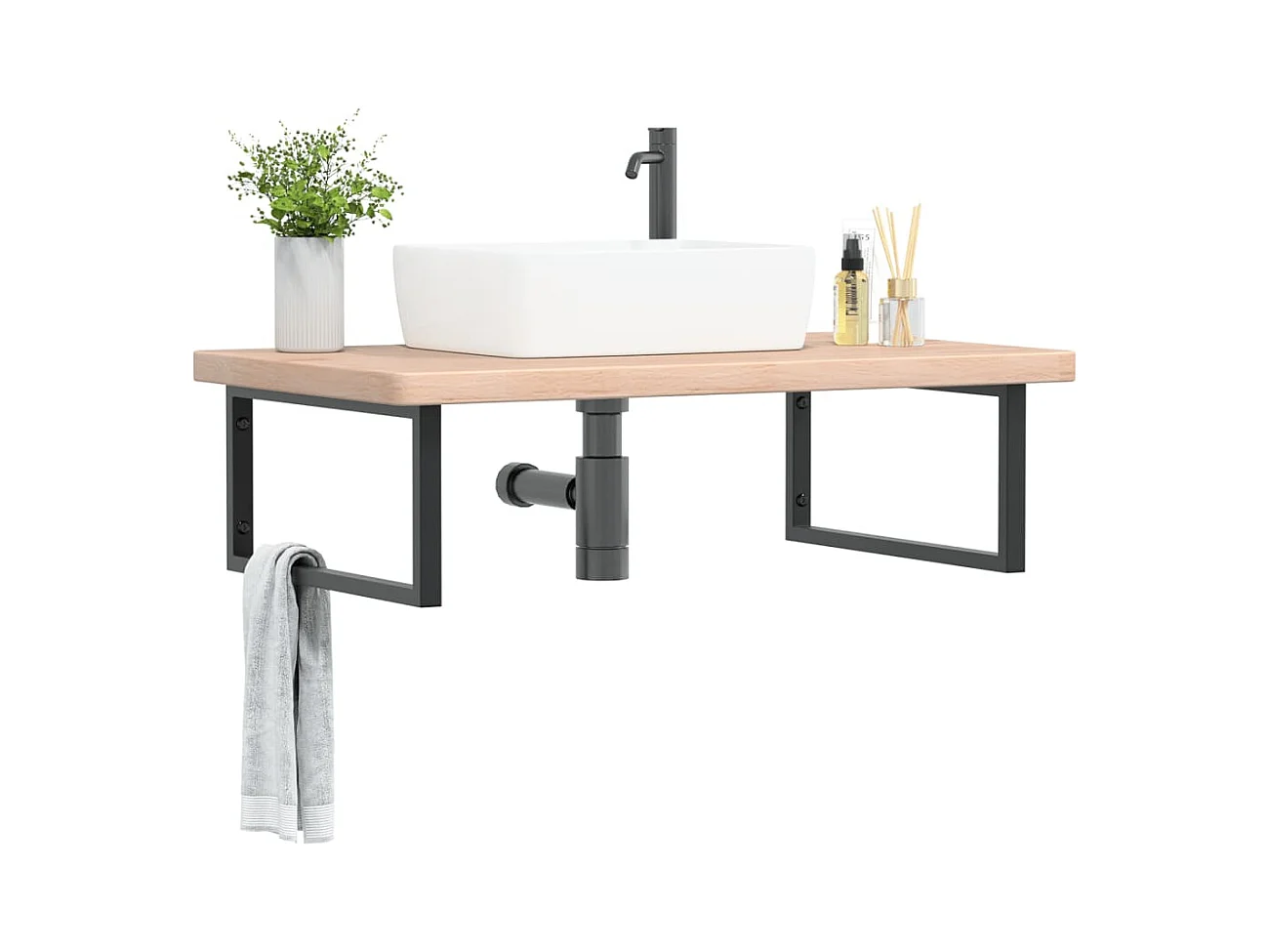 Badkamer wandschap staal en massief acaciahout