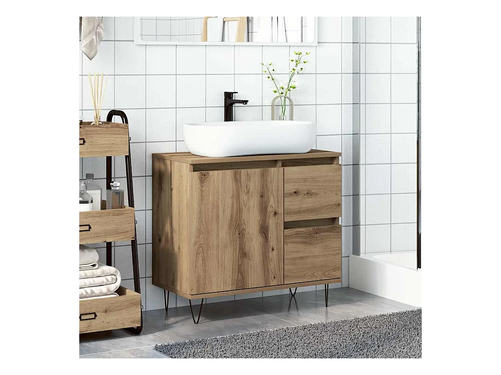 Badkamer wastafelkast handgemaakt eiken 65x33x60 cm