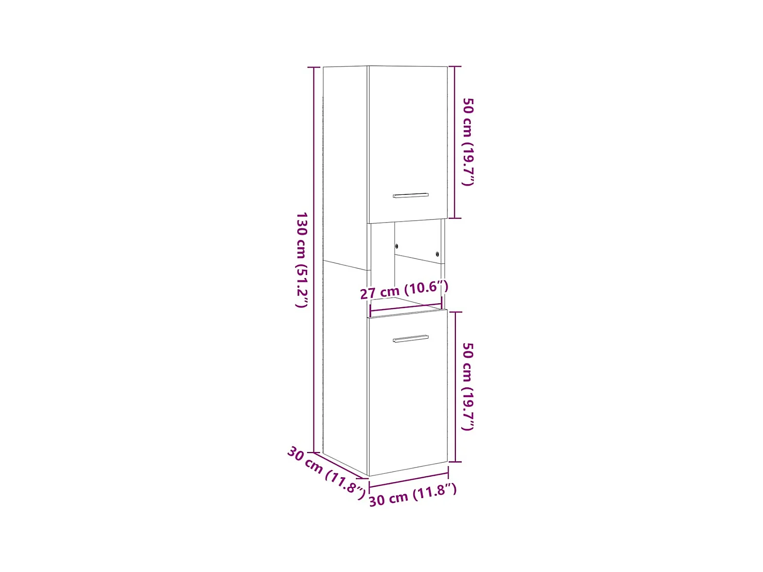 Badkamerkast 30x30x100 cm bewerkt hout oud houtkleurig