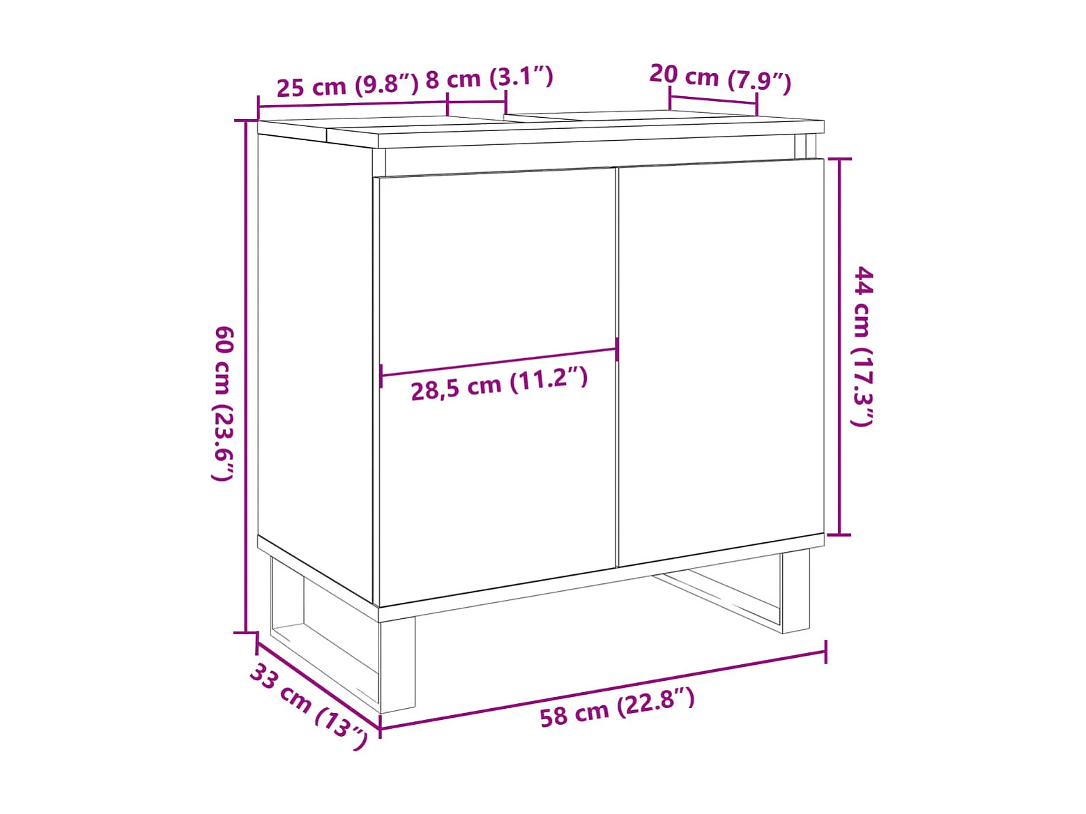 Badkamerkast 58x33x60 cm bewerkt hout betongrijs