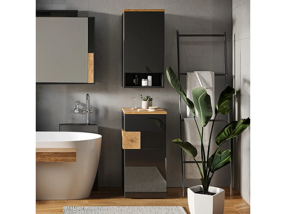 Badschrank eiche/grau mit kachelstruktur 20x33x72.6 lotta