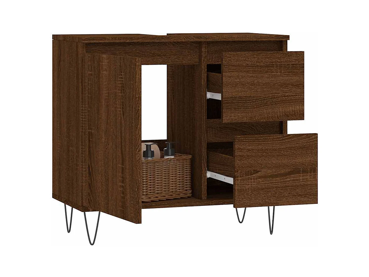 Badkamerkast bruin eiken 58x33x60 cm bewerkt hout