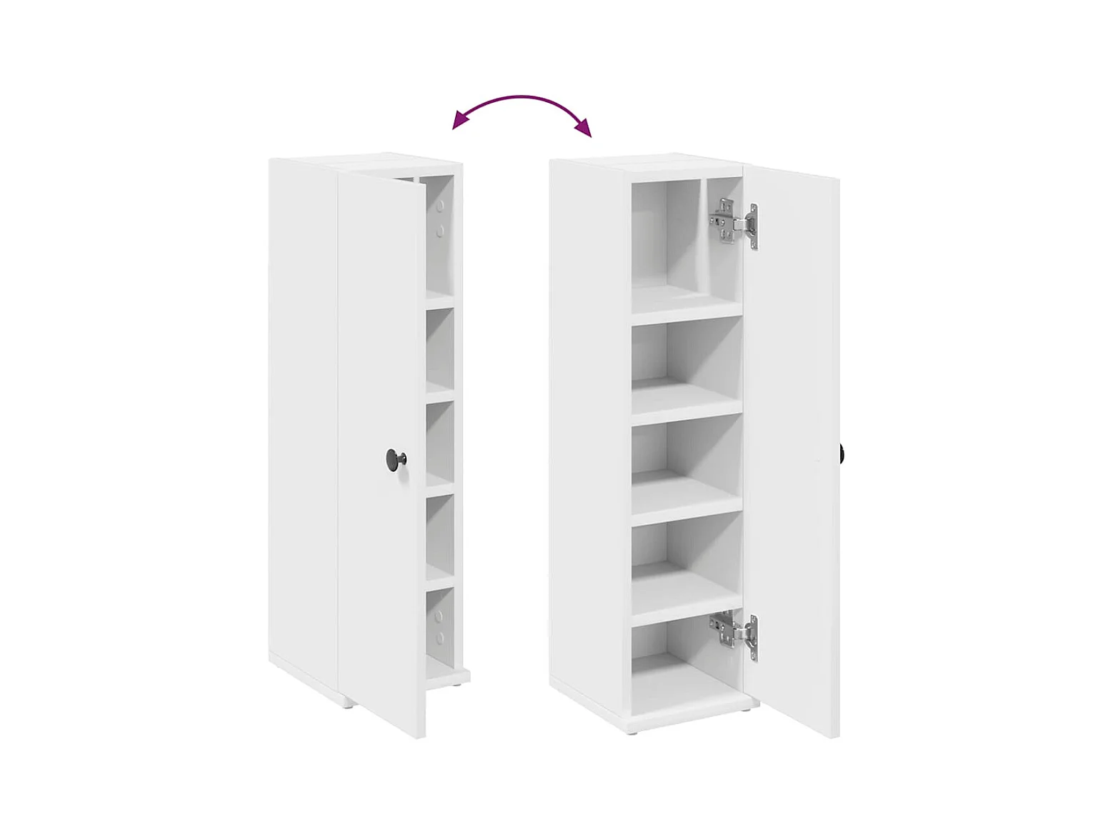 Smalle kast met lade en verstelbare plank, hout, wit (20x20x178 cm)