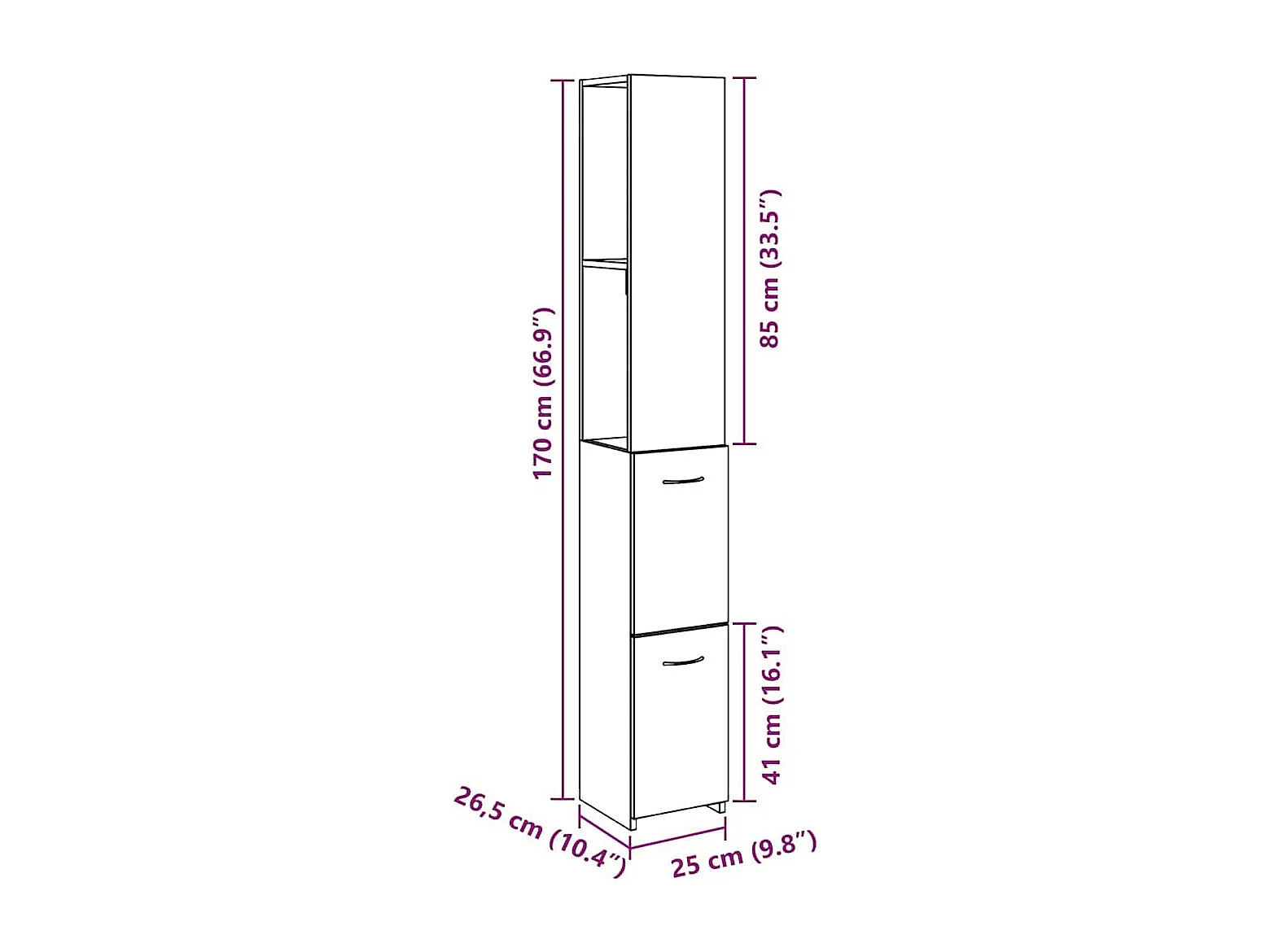 Handgemaakte eikenhouten badkamerkast 25x25x170 cm