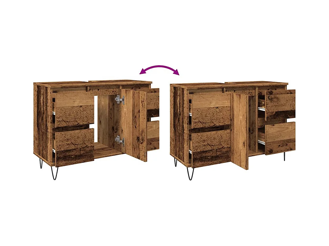 Badkamerkast oud hout 80x33x60 cm bewerkt hout