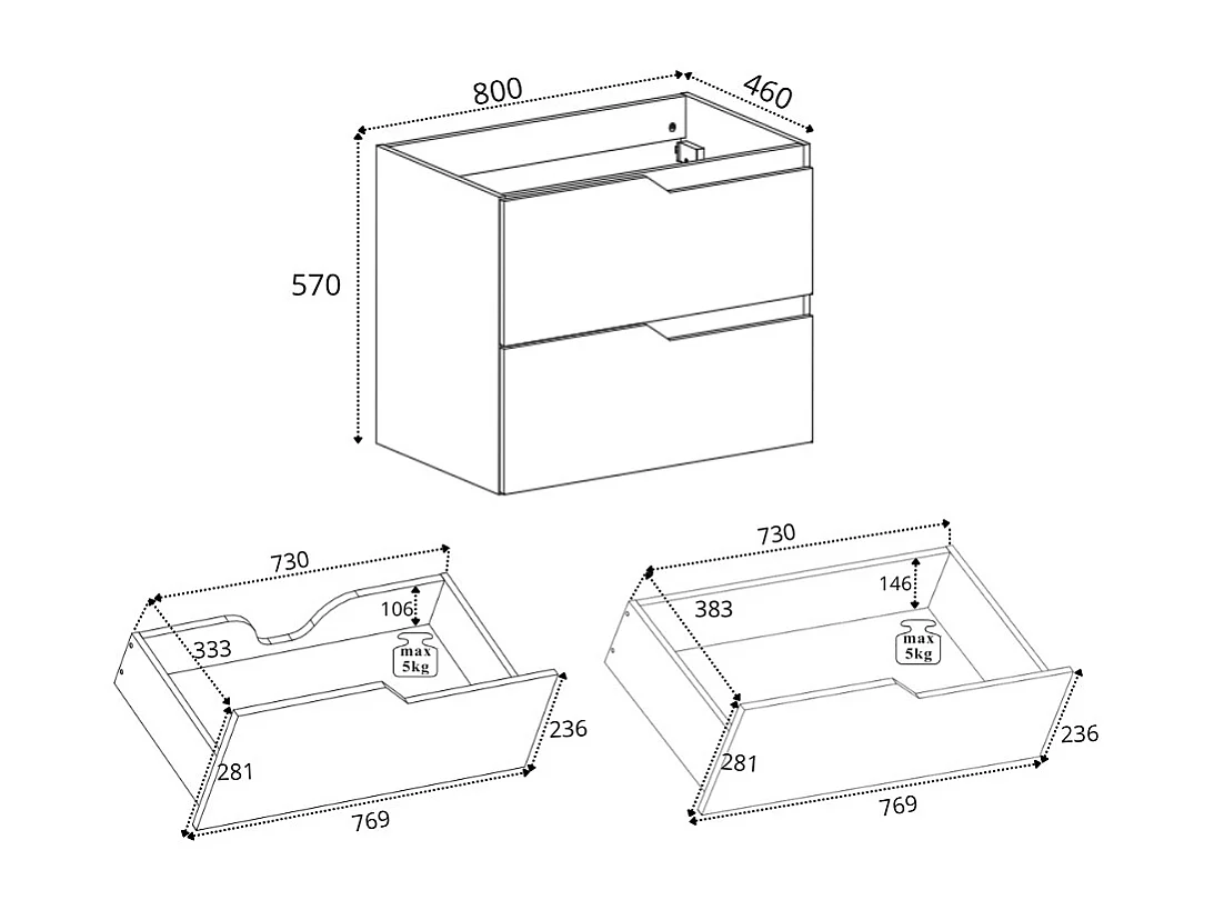 Badkamerkastje voor aan de muur onder de wastafel, kasjmier, 80 x 57 x 46 cm