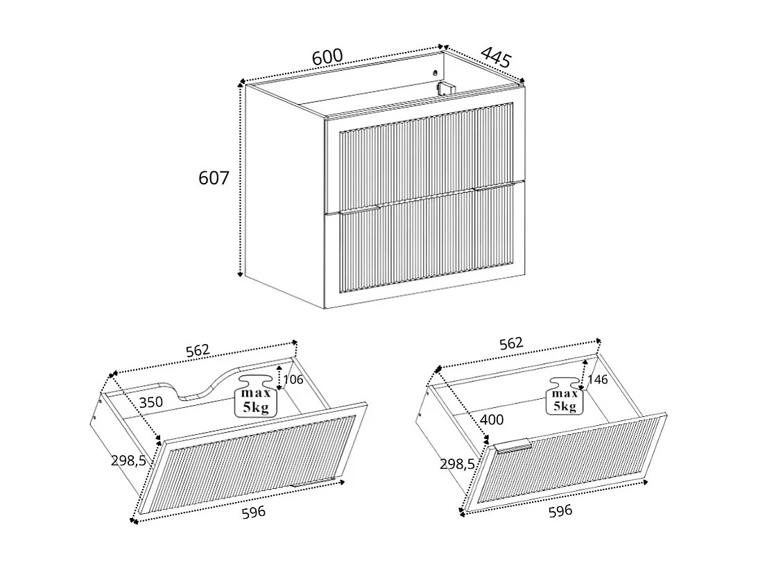 Badkamerkastje, wit, 60 x 44,5 x 60,7 cm, zonder tafelblad