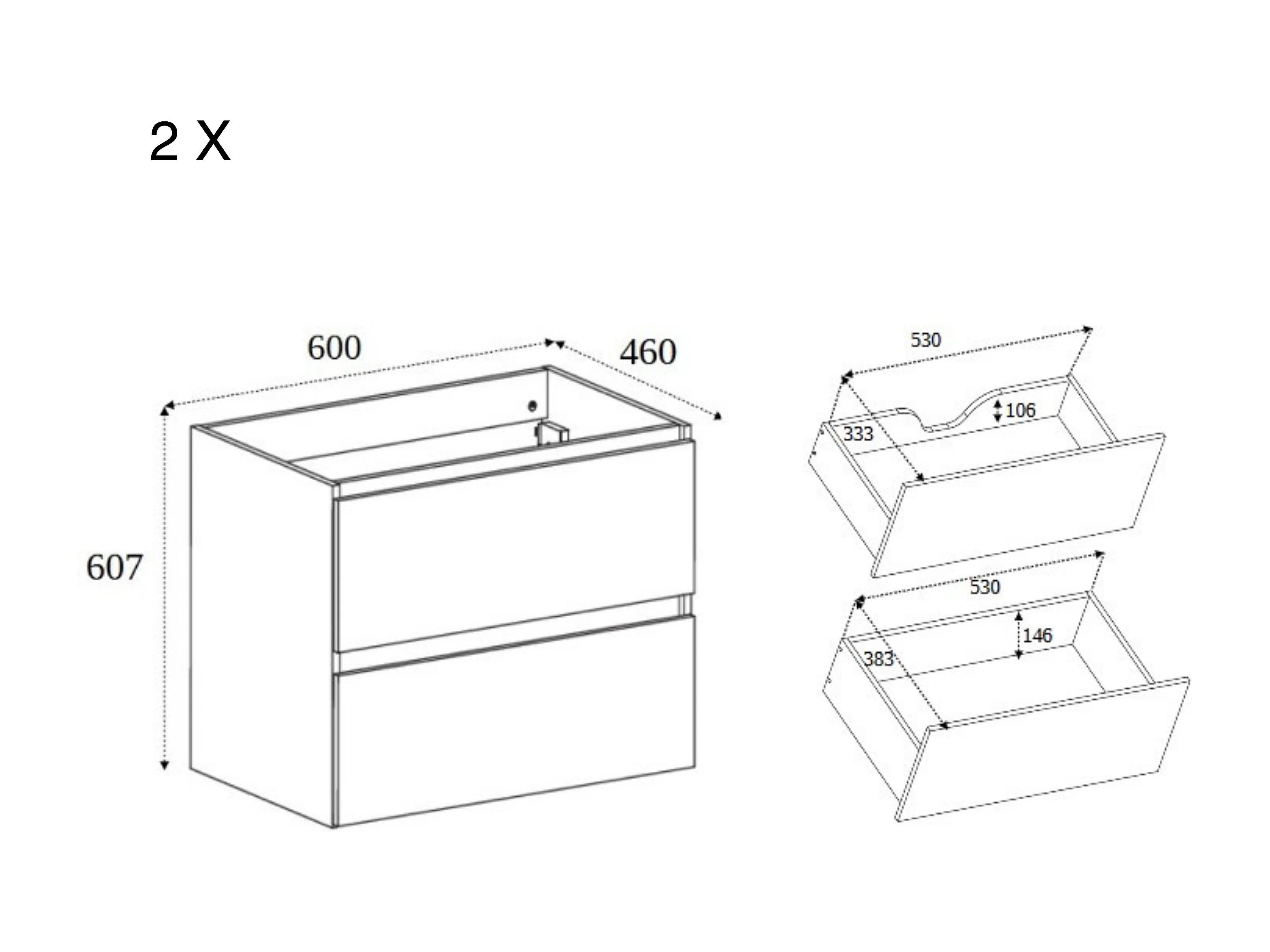 Badkamermeubel 120 cm (2 x 60), Kleur: Donker eiken, 120 x 60,7 x 46 cm