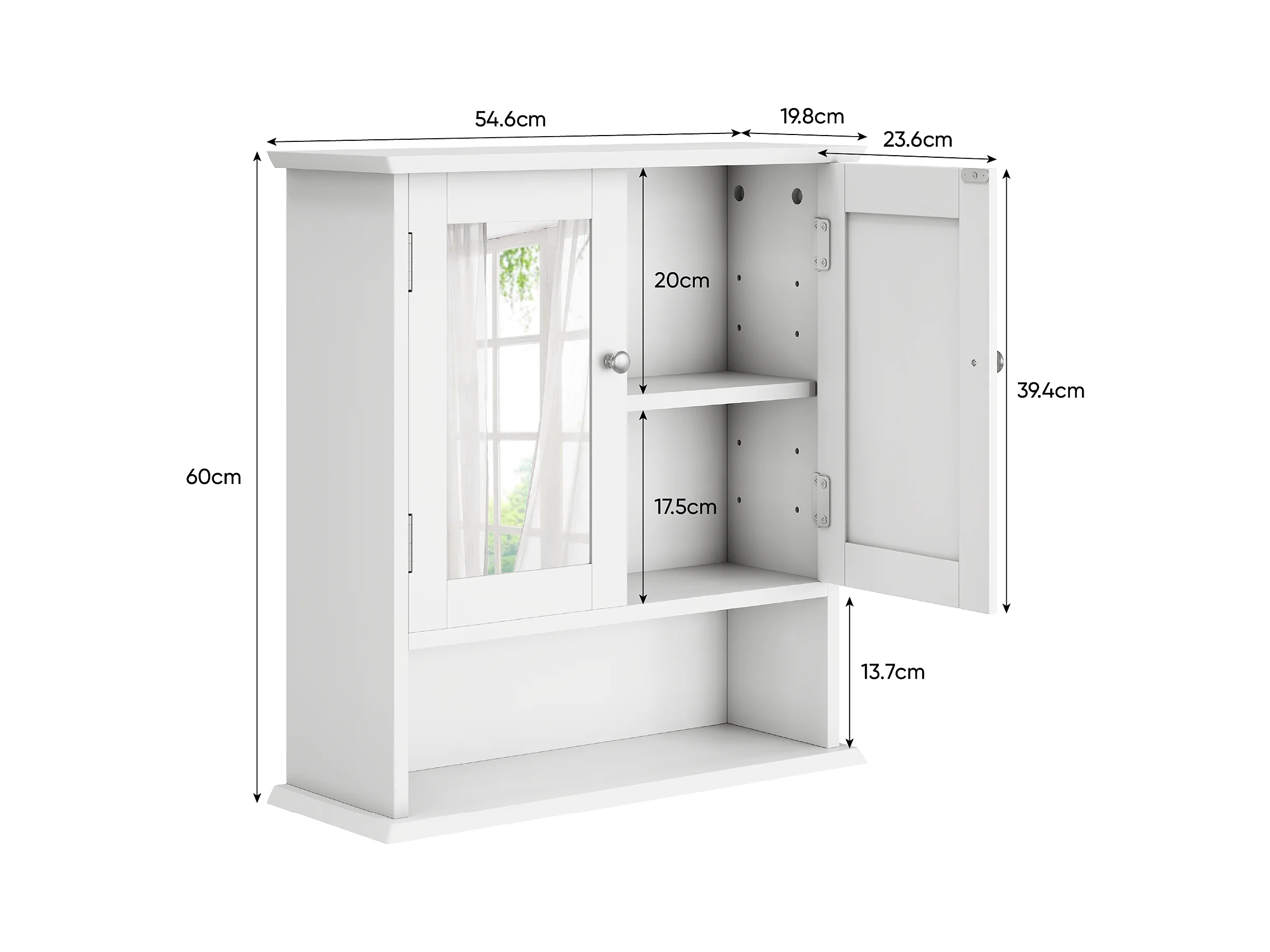 Badkamermeubel met spiegel, verstelbare planken, MDF, wit (54,6x19,8x60 cm)