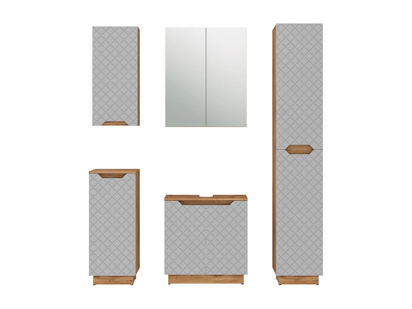 Badkamermeubelset eiken/grijs met tegelstructuur 59.8x32x62.1 lotta