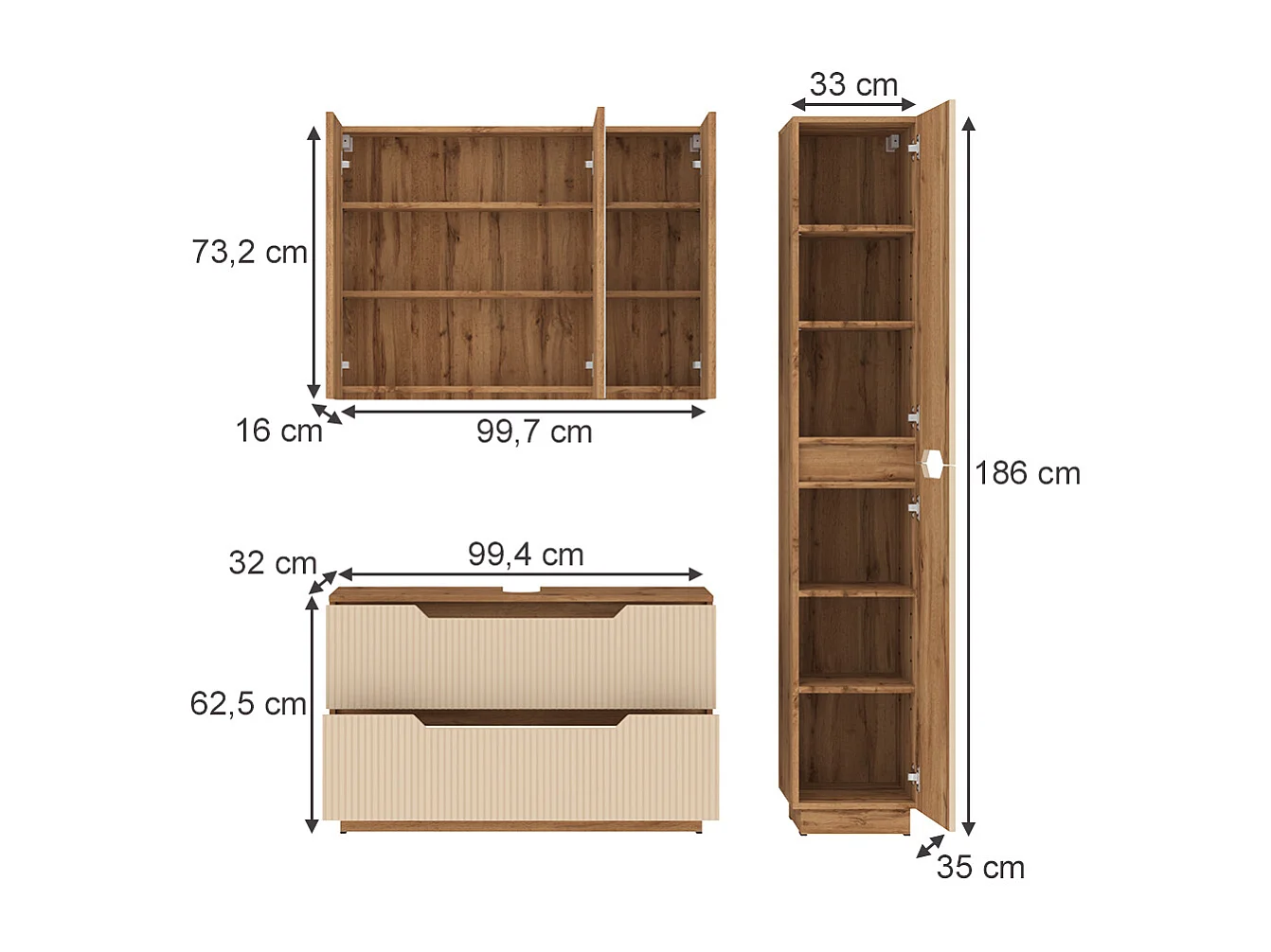 Badkamermeubelset eiken/kasjmier gestreept 99.4x32x62.5 lotta