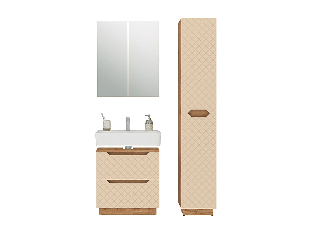 Badkamermeubelset eiken/kasjmier met tegelstructuur 59.8x32x62.5 lotta