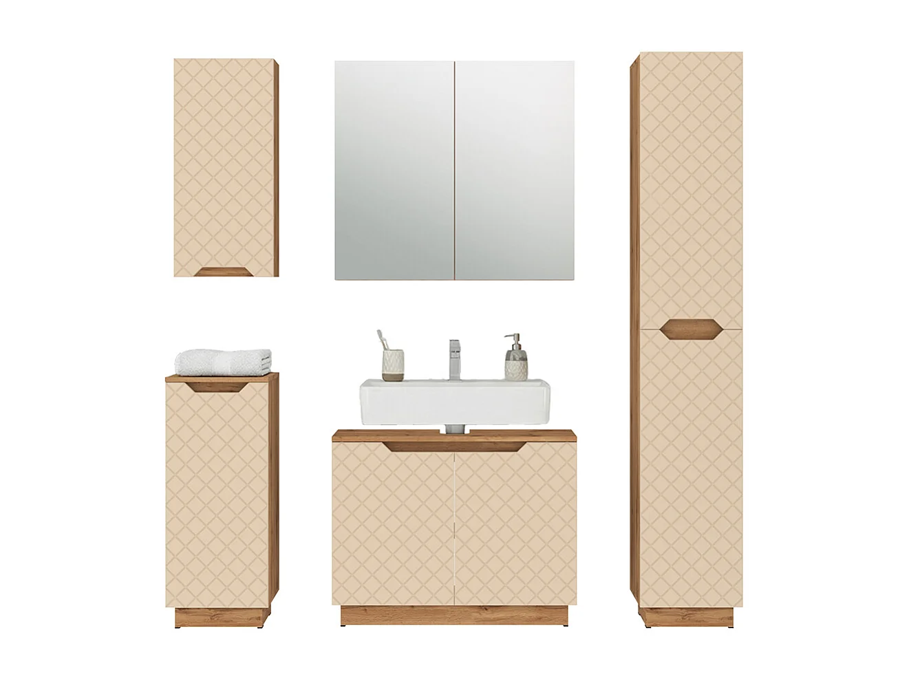 Badkamermeubelset eiken/kasjmier met tegelstructuur 79.6x32x62.5 lotta