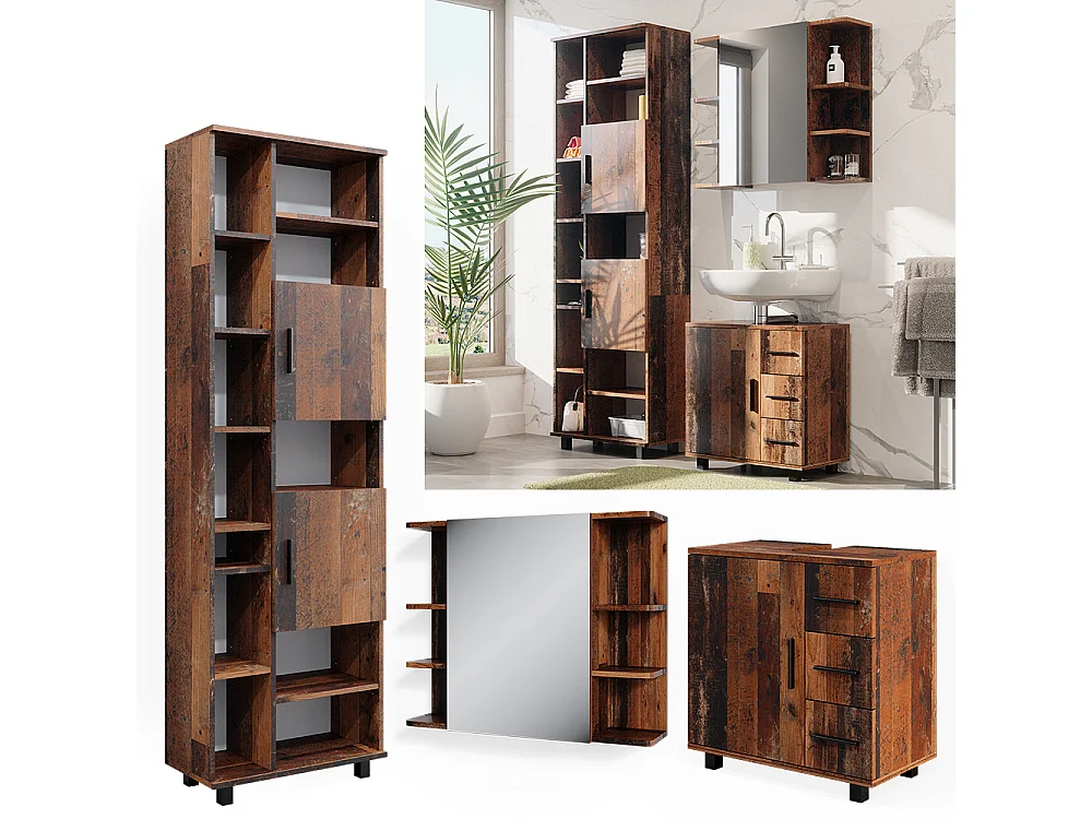 3-delige badkamermeubelset in antiek hout