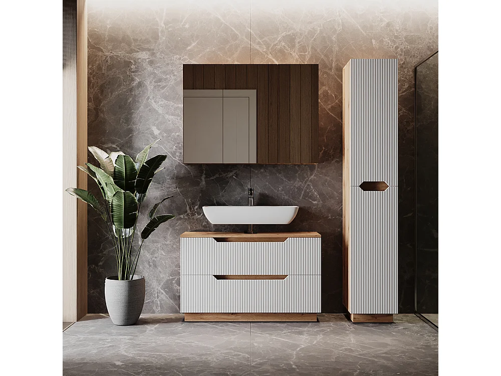 Badkamermeubelset eiken/wit gestreept 99.4x32x62.5 lotta