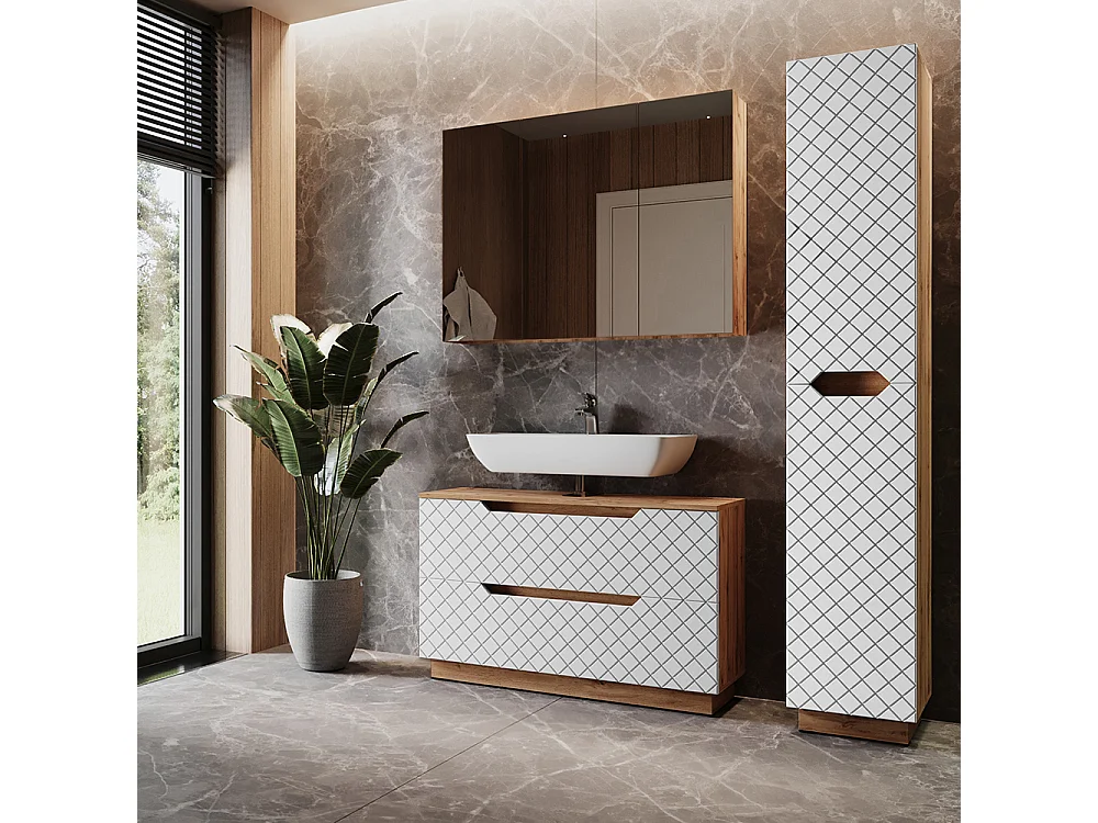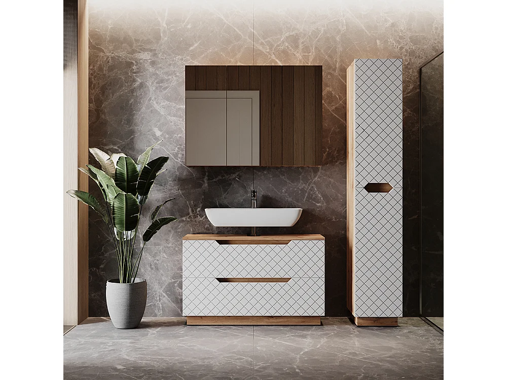 Badkamermeubelset eiken/wit met tegelstructuur 99.4x32x62.5 lotta