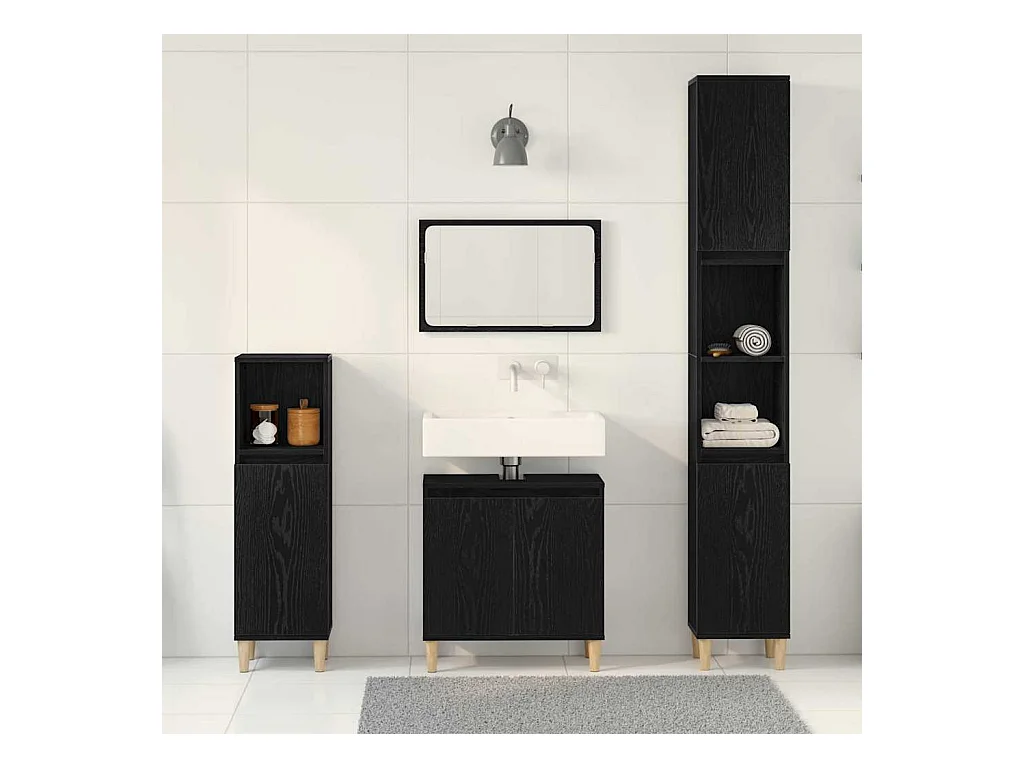 Badkamermeubelset met lade 3-delig Zwart eiken