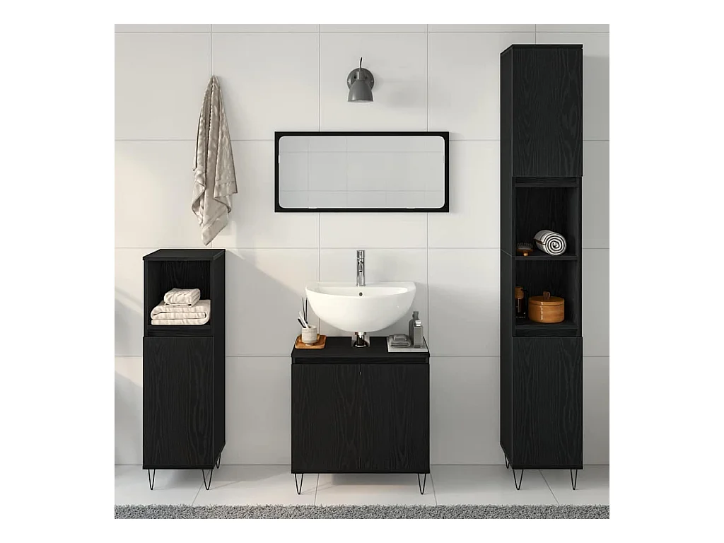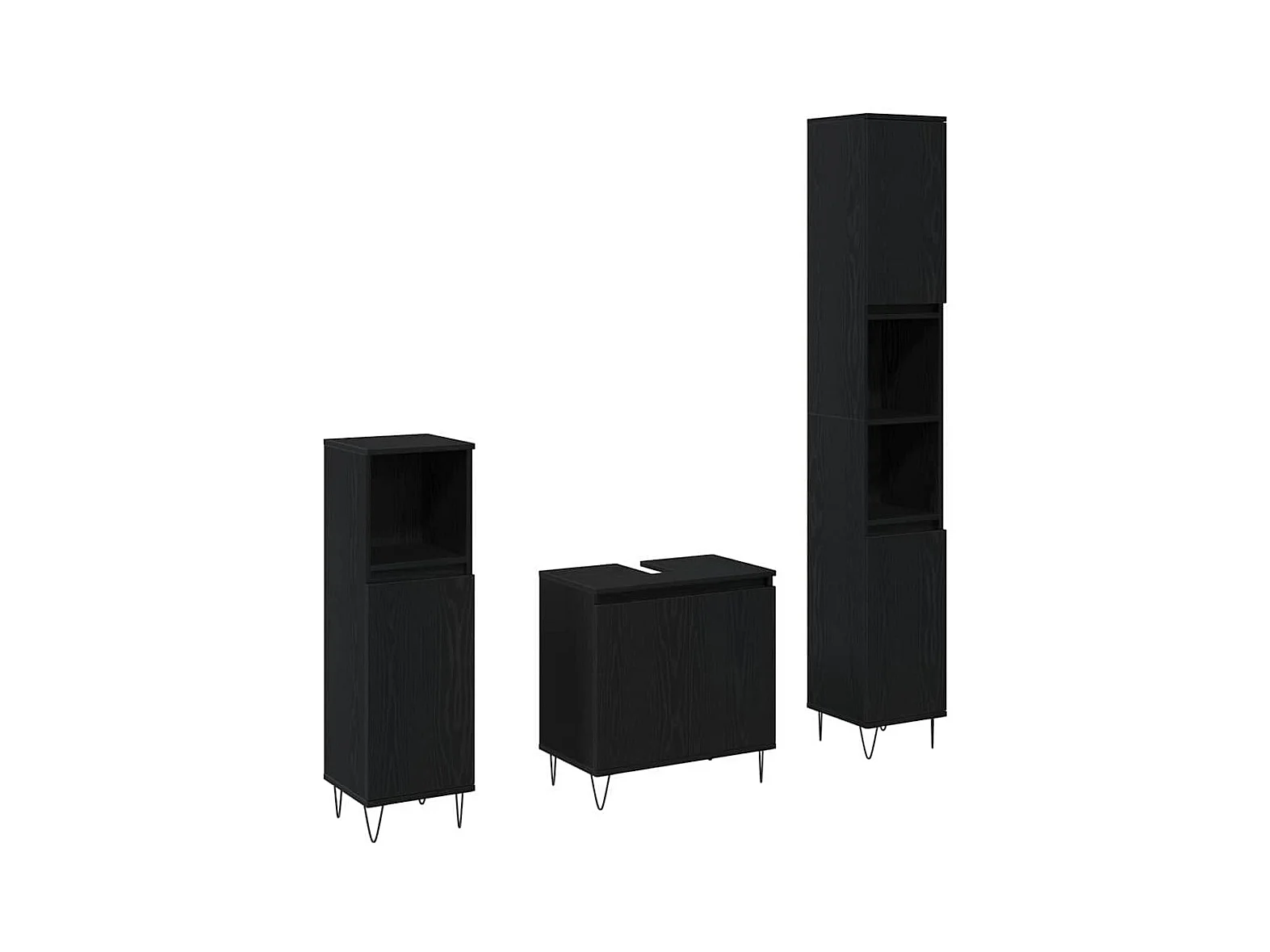 Badkamermeubelset met opbergruimte 3-delig Zwart Eiken