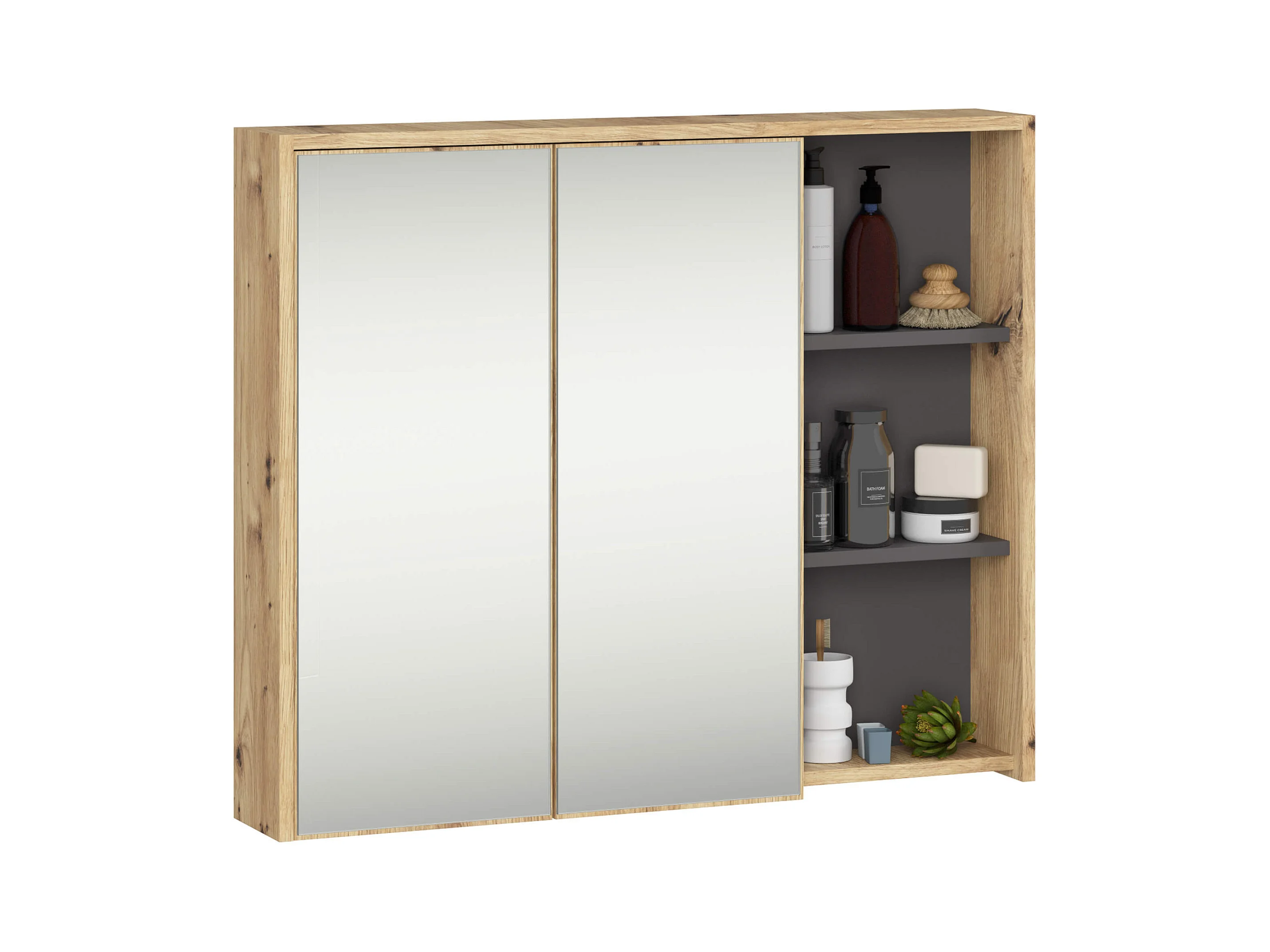 Badkamermeubelset VAMI 4-delige / hangende Badkamerkasten / 21 Planken en 2 Lades / Grafietgrijs - Artisan Eik / AKORD Furniture Factory