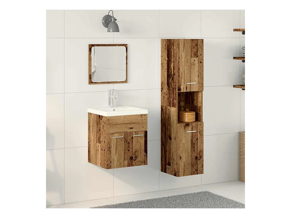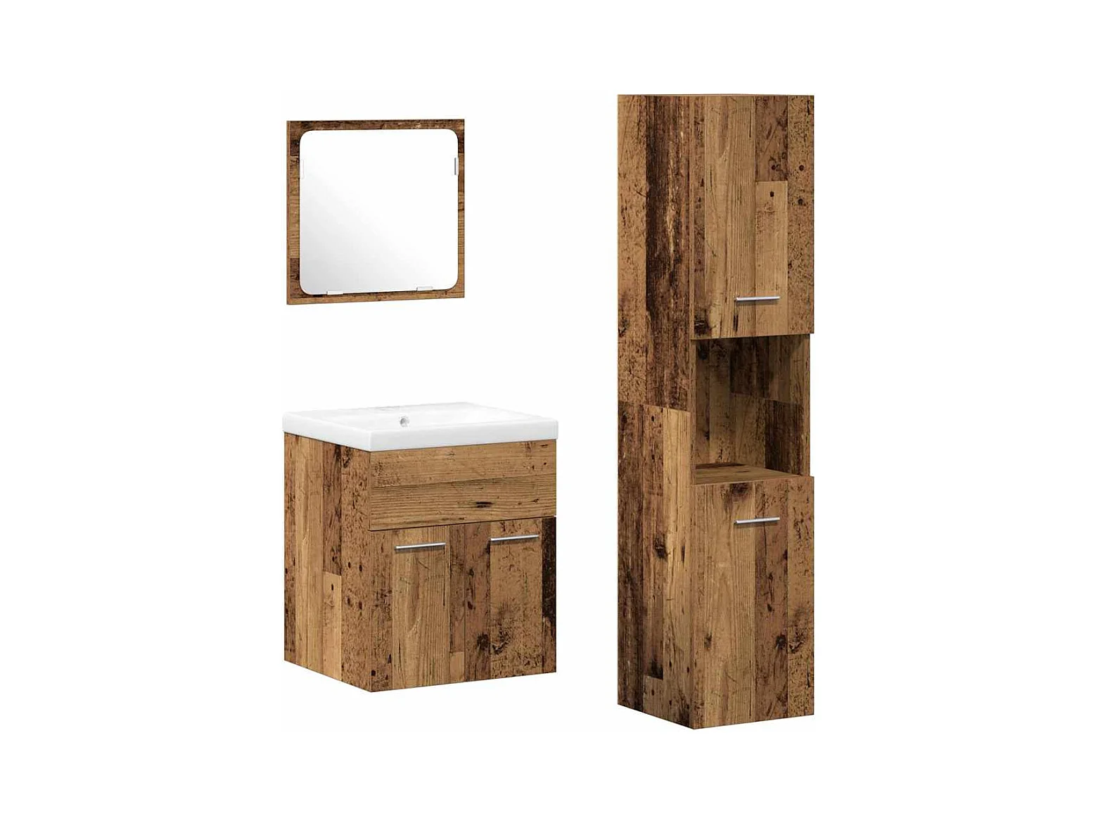 Badkamermeubelset Wandmontage 4 stuks Antiek Hout