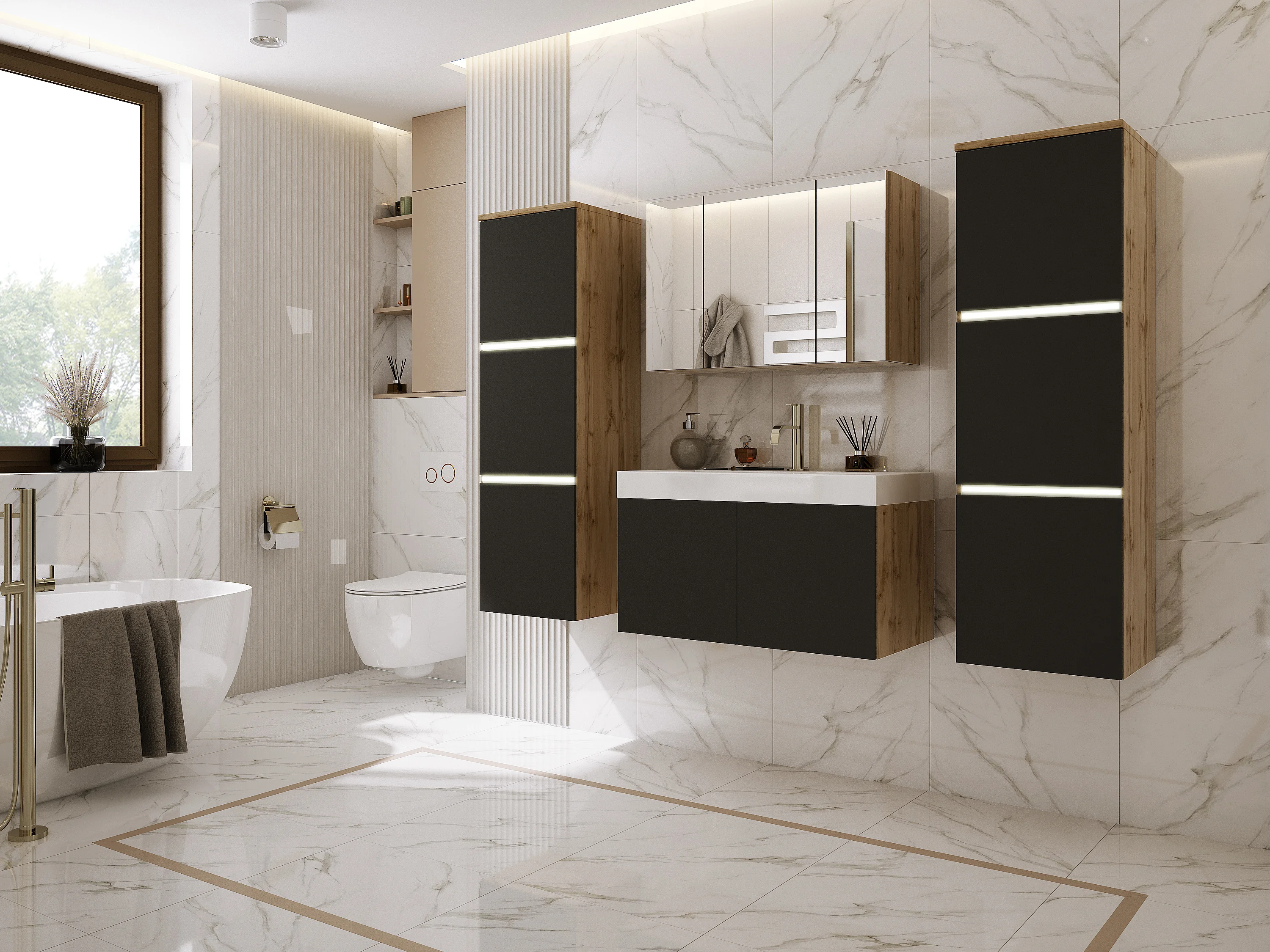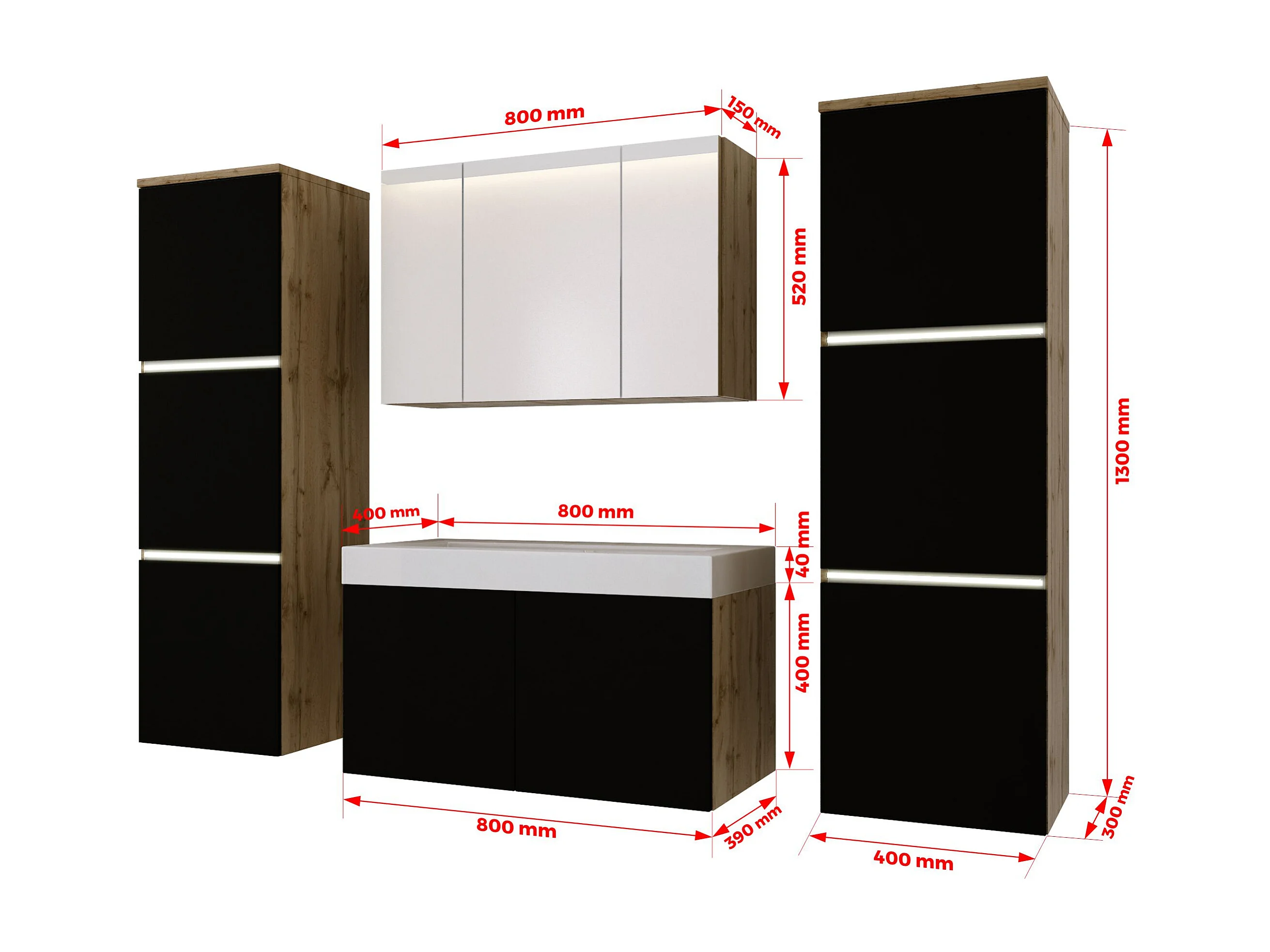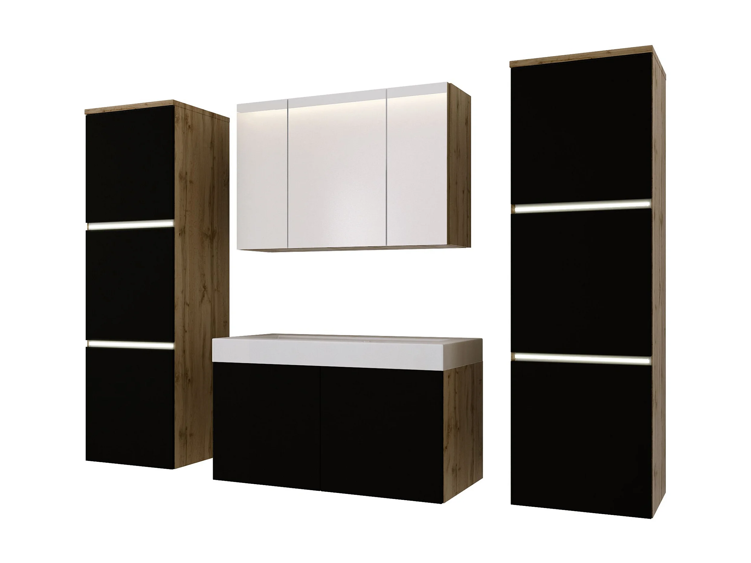 Badkamermeubelset, Wotan eikenhout, matzwart, 160 x 130 cm
