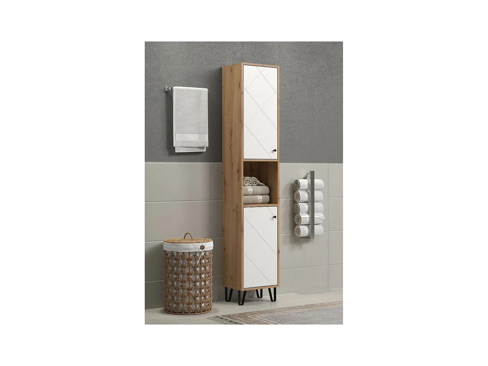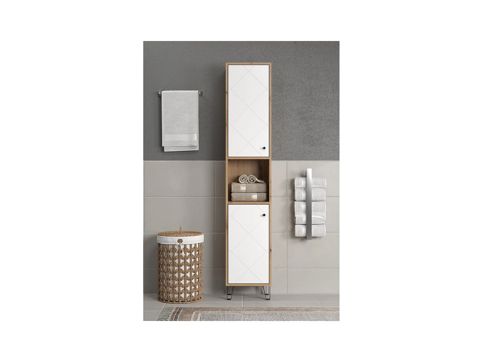 Badkameronderkast Touch, Wit, 36x191x29 cm, EPIKASA