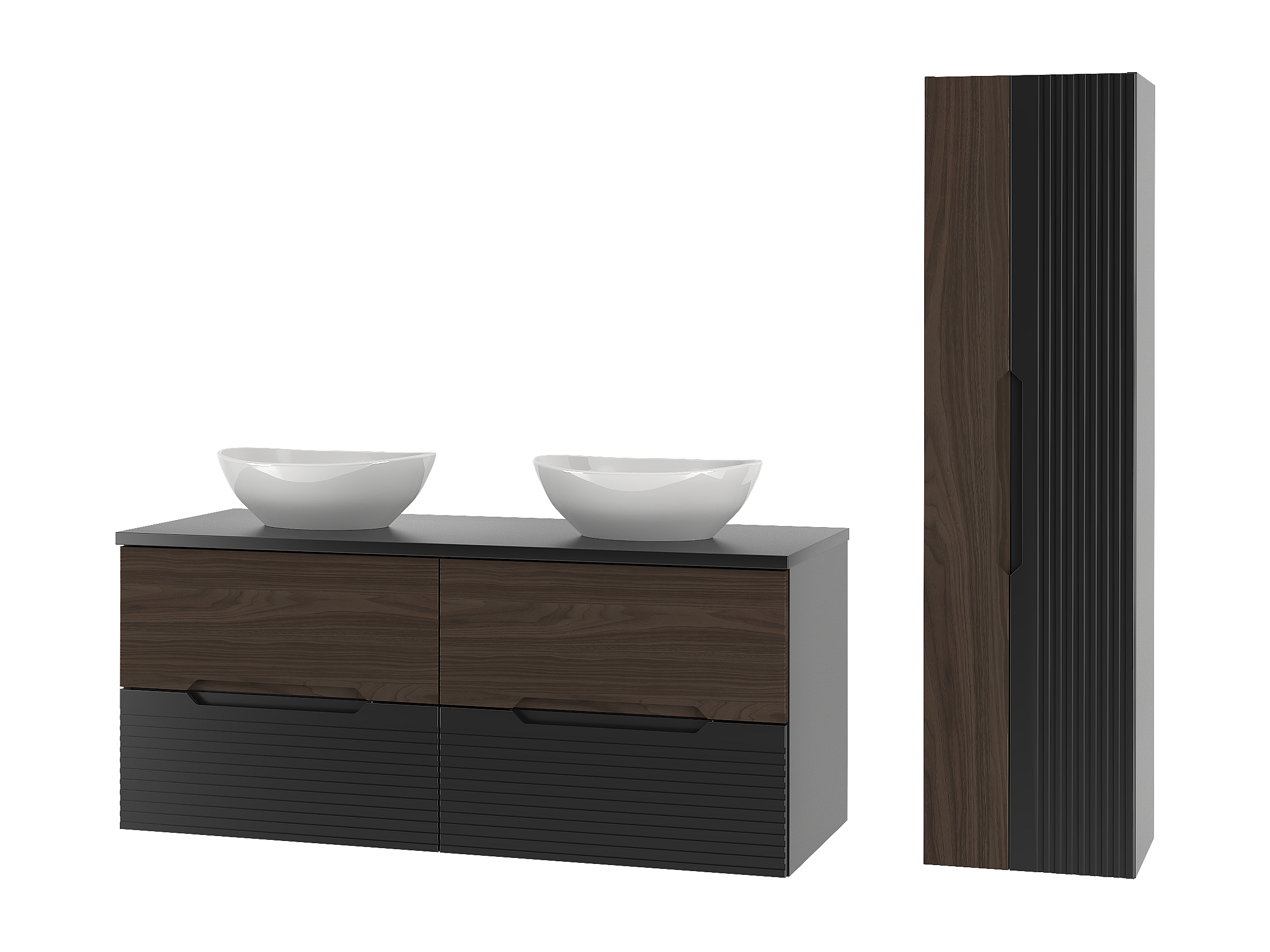 Badkamerset 120 cm Kast met wastafel Kolom Zwart mat / Notenhout Avella