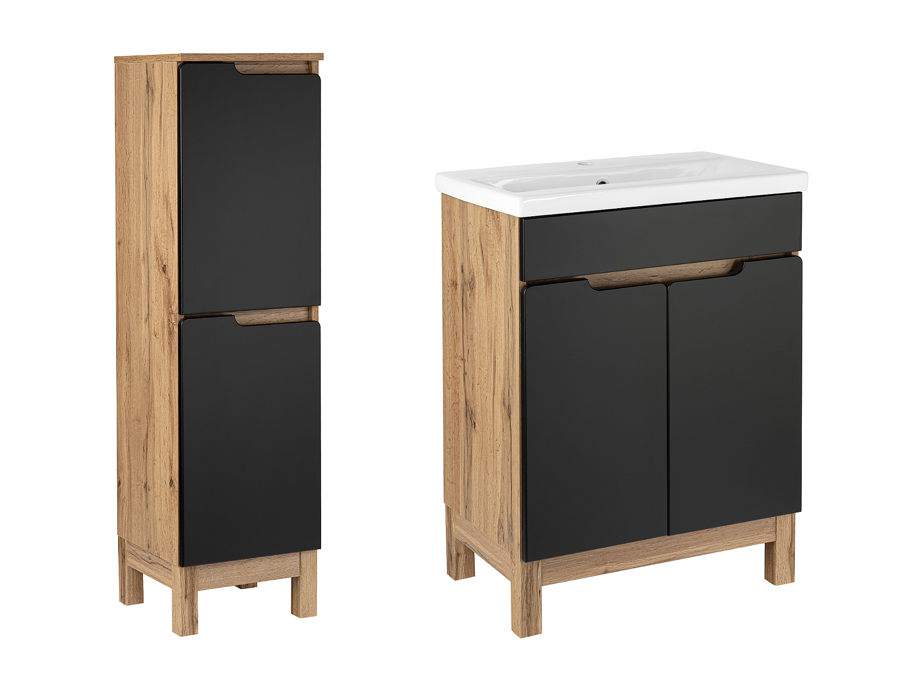 Badkamerset 60 cm Alma Kolom Eiken Wotan / Mat Zwart