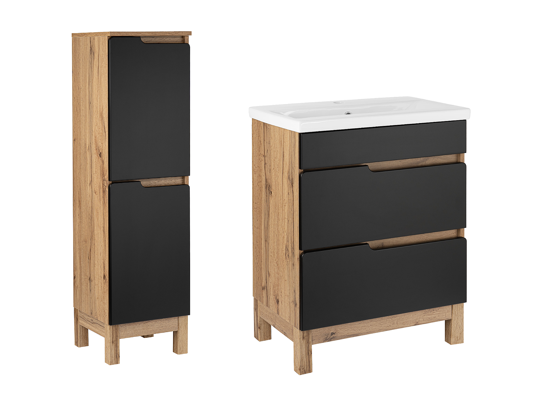 Badkamerset 60 cm Alma Kolom Eiken Wotan / Mat Zwart